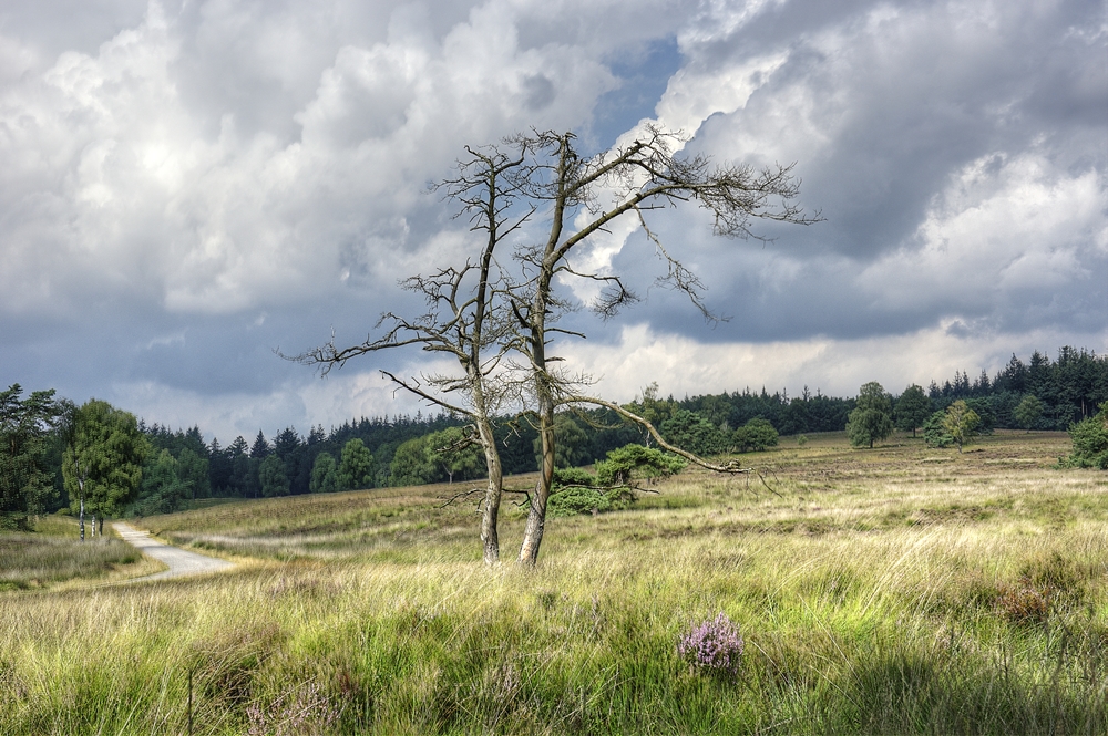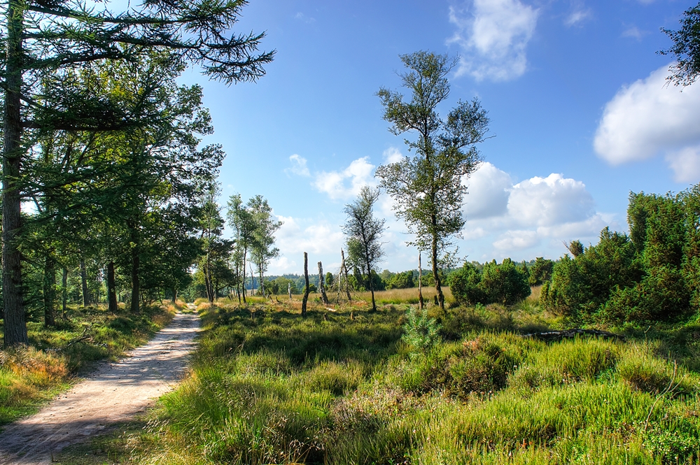 Het duurt heel even voordat het de juiste eerste blauwe paaltje hebben gevonden, maar daarna is de route prima uitgezet. Ook is het wel eens prettig om niet voortdurend op een routebeschrijving te hoeven kijken (Joske haar ‘werk’), maar simpelweg gekleurde paaltjes volgen. De Loenermark, we waren er al eens eerder geweest, is een prachtig mooi en afwisselend natuurgebied. De fraaie wolkenpartijen en de heerlijke temperatuur maken dat we de hele wandeling lang genieten. Het is zeker een gebied waar naar we nog eens terug zullen keren.
