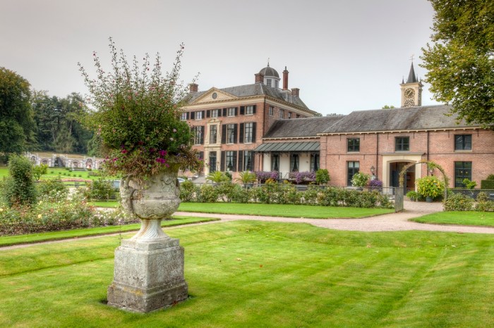Om in de tuinen en in het park te mogen komen moet er eerst entree betaald worden. Afgezien dat het geen groot bedrag is, heb ik het er wel voor over om in de prachtige omgeving rond te lopen. Voor de ingang van het kasteel staat een fraaie witte en snelle auto met bruidsboeket erop. Ja, ik kan me voorstellen dat dit een gewilde locatie is voor bruidsreportages. Toch hoop ik dat de auto verdwijnt want voor mijn doeleinde ontsiert de auto mijn beeld. Daarom besluit ik eerst een kop koffie te drinken in het restaurant in de voormalige Orangerie.