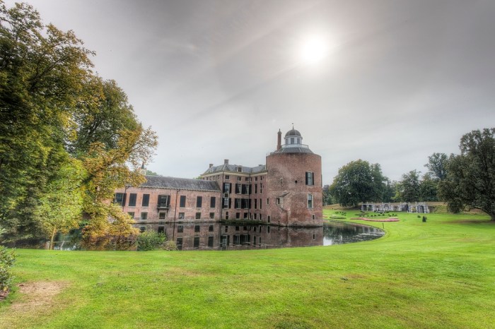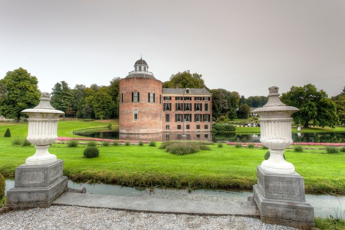 Niet veel later loop ik door het park en kom ik het bruidspaar en de fotograaf tegen. Heel even kijk ik een beetje de kunst af. Het kasteel en de bijgebouwen zijn zeker fotogeniek, maar er is geen fietser te bekennen, dus moet de opdrachtgever het doen met foto’s zonder fietsers. Verder dan het kasteel kom ik ook niet vandaag, dus een wat magere opbrengst.