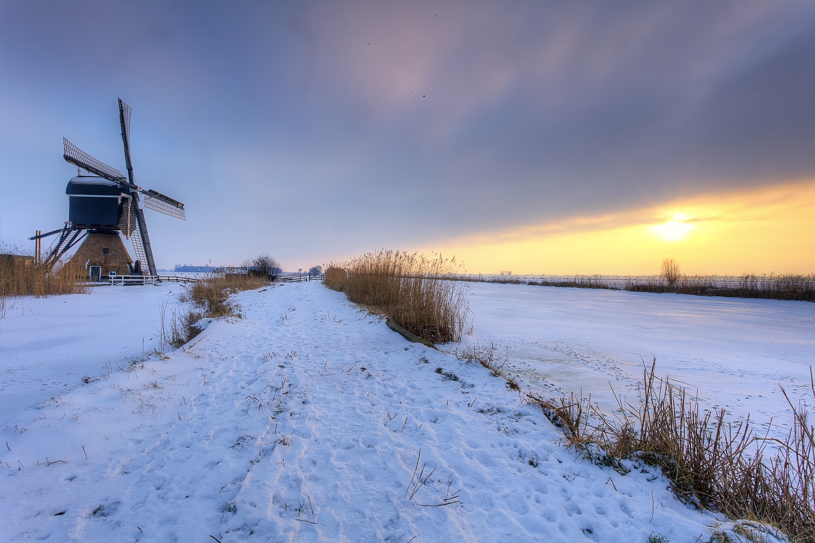 De weervoorspellingen geven aan dat het weer gaat dooien, dus vandaag nog wat winterbeelden proberen te maken. Al voor zonsopkomst sta ik bij de Broekmolen bij Streefkerk. Via Internet weet ik waar de zon opkomt ten opzichte van de molen en helaas is die niet gunstig. Althans, ik zie geen mogelijkheid om in het weiland te komen van waaruit de zonsopkomst evenwijdig loop t aan de molen. Bovendien is er veel bewolking en is het zo wie zo de vraag of de opkomst zichtbaar is? Gelukkig laat een band bewolking een glimp zien van de zon, die dan al een poosje aan de hemel staat. Ondanks dat, blijft ook deze plek zeker de moeite van het bezoeken waard.