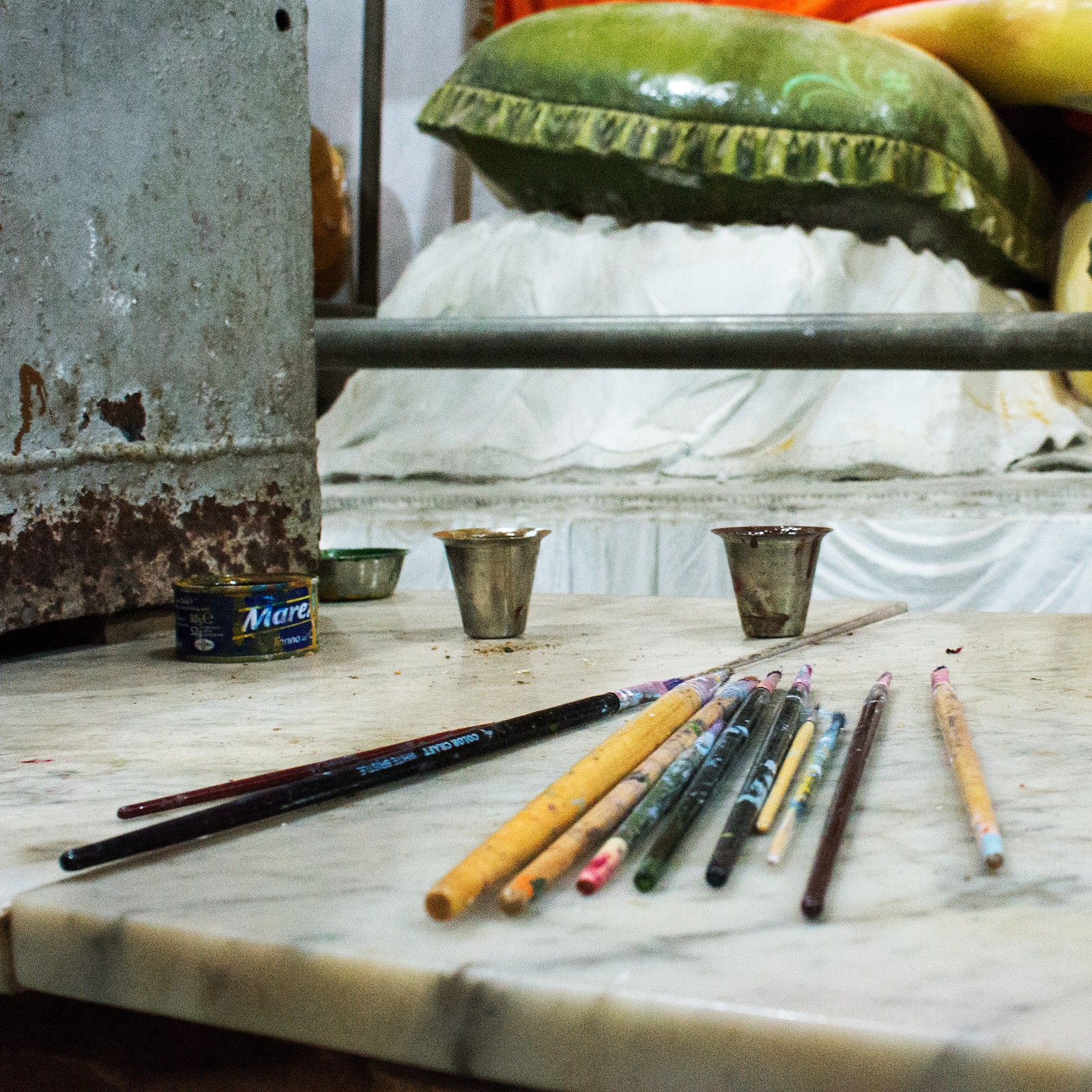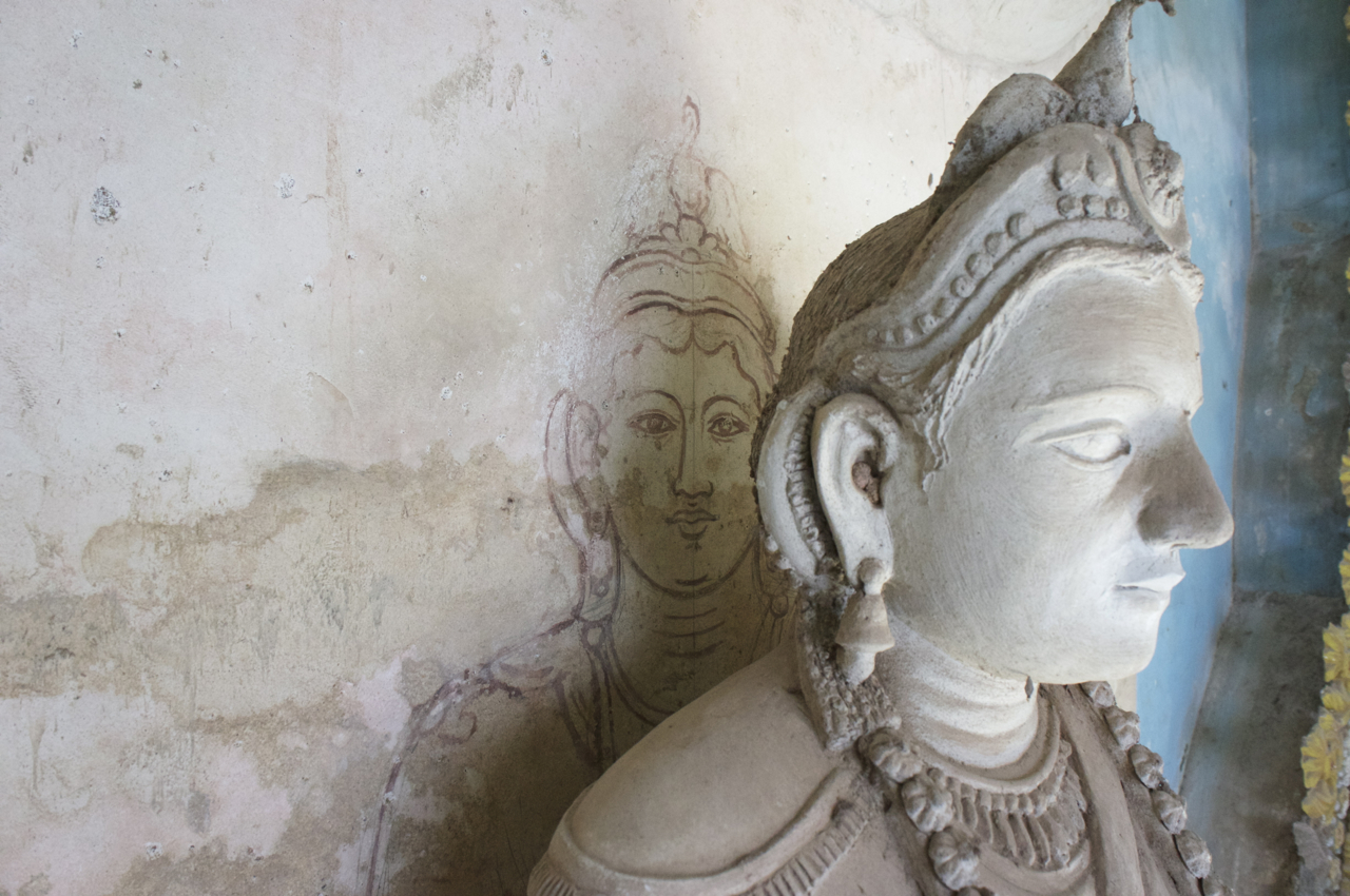 Deze tempel wordt binnenin op dit moment gerestaureerd en ook dat is interessant om te zien. Het schilderen van de beelden en afbeeldingen gebeurd nog steeds met verf die op de oorspronkelijke wijze wordt gemaakt. Of te wel; alleen natuurlijke grondstoffen worden gebruikt. Een afbeelding op de wand is de basis voor het herstellen of opnieuw opbouwen van een beeld.