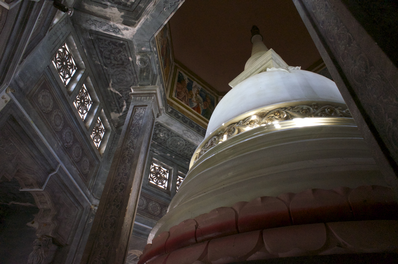 Een bijzonderheid van deze tempel is wel dat men om de stupa een toren heeft gebouwd in plaats van de stupa zichtbaar te plaatsen op het tempelterrein.