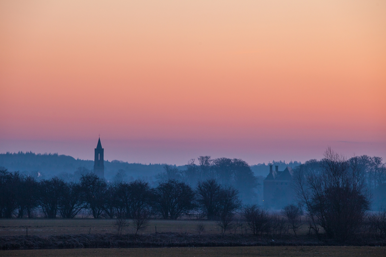 Vanmorgen genoten van een fraaie zonsopkomst in de Bovenpolder bij Amerongen. De foto die je hieronder ziet is de skyline van Amerongen.