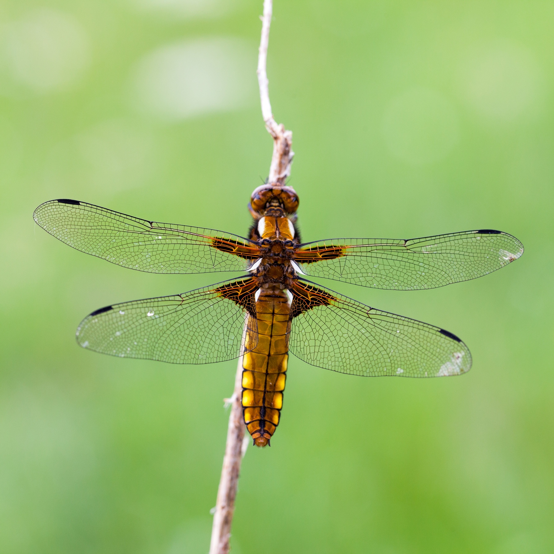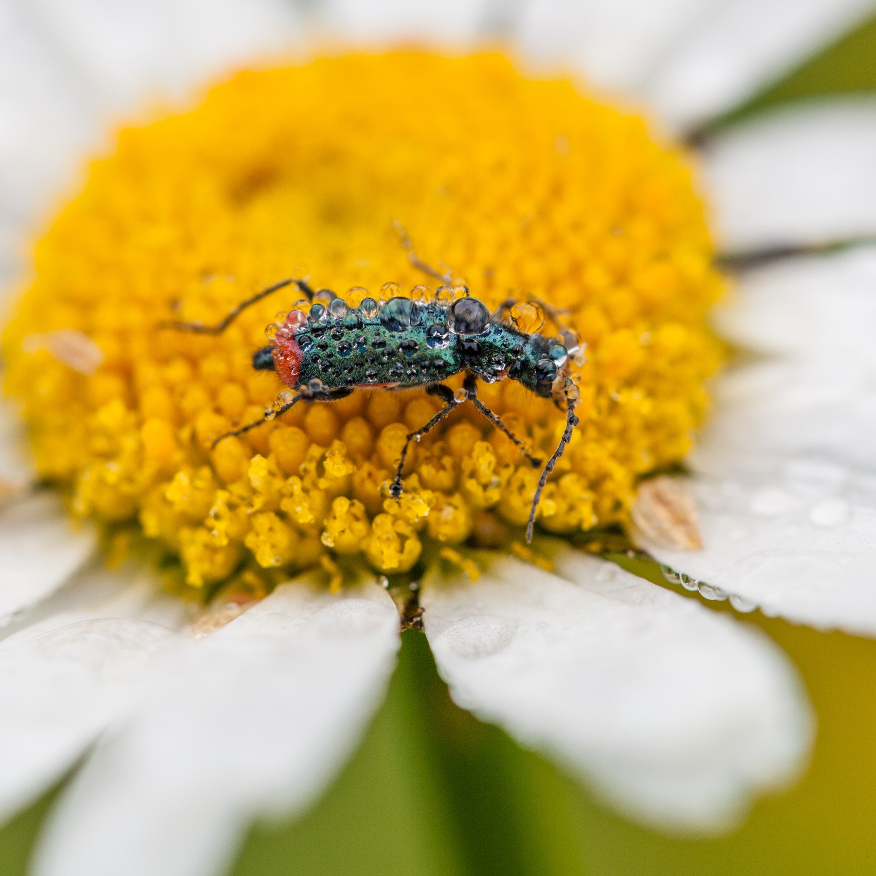 Hoe dan ook, ik mag graag bloemen, insecten en zo voort van heel dichtbij fotograferen. Zo zie je veel details van een insect die je normaal gesproken niet zo snel met het blote oog ziet. Macro opnames maken van insecten kun je het beste doen in de vroege ochtend als de beestjes nog niet zijn opgewarmd. Een insect krijgt pas energie als de omgevingstemperatuur boven de 10 graden Celsius is. Het allermooiste vind ik wanneer er ook nog eens dauwdruppels op het insect zitten. Macro opnames tot slot maak ik bij voorkeur met gebruikmaking van een driepoot statief of soms ook een eenpoot statief (monopad). De reden om een statief te gebruiken heeft alles te maken met het feit dat je al heel snel bewegingsonscherpte hebt als je uit de hand fotografeert. Zeker wanneer er ’s morgens nog weinig licht is.