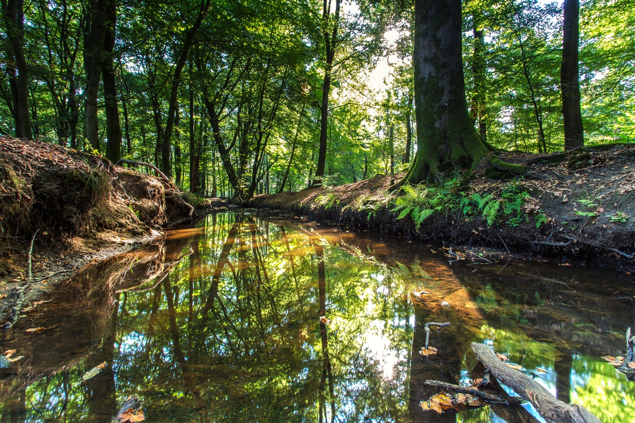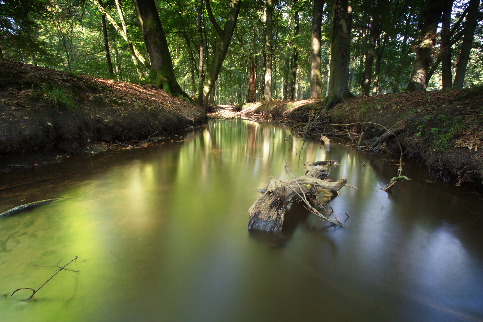 Sinds de aanschaf van allerlei filters, is het fotograferen van een (stromende) beek door een bos een van de zaken die op ons verlanglijstje staan. Maar, pas wanneer de bladeren van de beuken in het Leuvenumsebos door de herfst goudgeel gekleurd zijn en de Leuvenumsebeek goed gevuld is met water en flink stroomt. Ondanks dat we wisten dat we op deze ideale omstandigheden nog even moesten wachten, toerden we naar dit mooi stukje natuur. We beschouwden onze fototrip daarom maar als een verkenningstocht voor betere tijden. Behalve de kleuren en het waterpeil in de beek, zouden we ook gaan fotograferen van uit de beek zelf. We hebben het er diverse malen over gehad: laarzen mee en/of een waadpak aanschaffen.