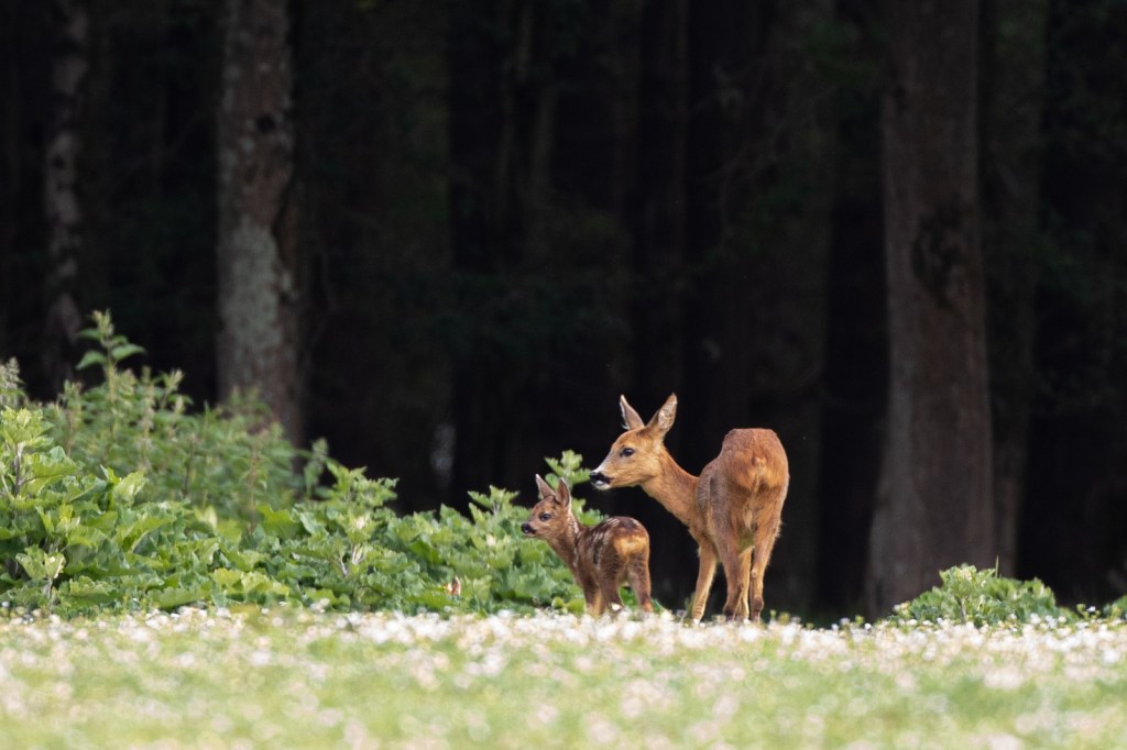 Net als wij besluiten om huiswaarts te keren verschijnen er 3 nieuwe reeën, waaronder 1 kalfje. Een mooie afsluiting van deze ochtend….