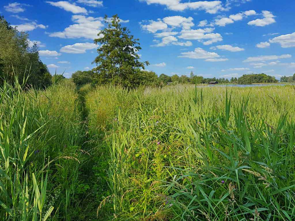Na het eerste bruggetje over een van de kanaaltje, heeft Natuurmonumenten het overtollige en de overdadig begroeiing gemaaid. De contouren van het pad zijn weliswaar weer zichtbaar, maar het pad zelf ligt nu vol met hetgeen gemaaid is. Dit maakt het lopen er niet eenvoudig op. Oké, het is net open voor publiek en daarom is men nog niet klaar. Laten we het daar maar op houden.