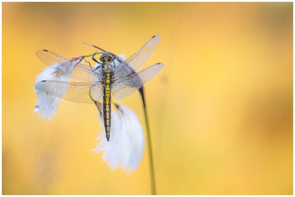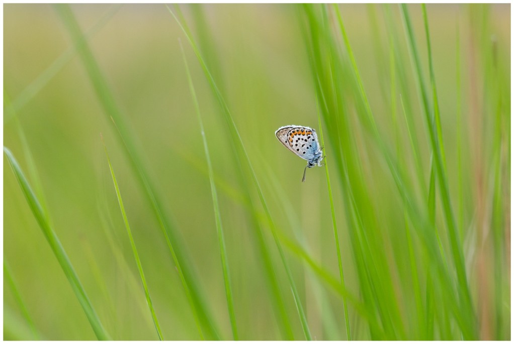 Na het fotograferen van het landschap zijn het de kleine ‘fladderaars’ die ik graag voor de lens krijg. Aanvankelijk gebruikte ik hiervoor mijn 100mm macrolens van Canon. De laatste tijd gebruik ik steeds vaker mijn 100x400mm telezoomlens. Met deze lens, de tweede versie, kan ik volledig ingezoomd tot ca 60 centimeter minimaal scherp fotograferen. Afgezien van het feit dat dit prima close up opnames oplevert, kan ik ook op een grotere afstand fotograferen dan met de macrolens. Hierdoor is de kans dat ik het insect verjaag een stuk kleiner.
