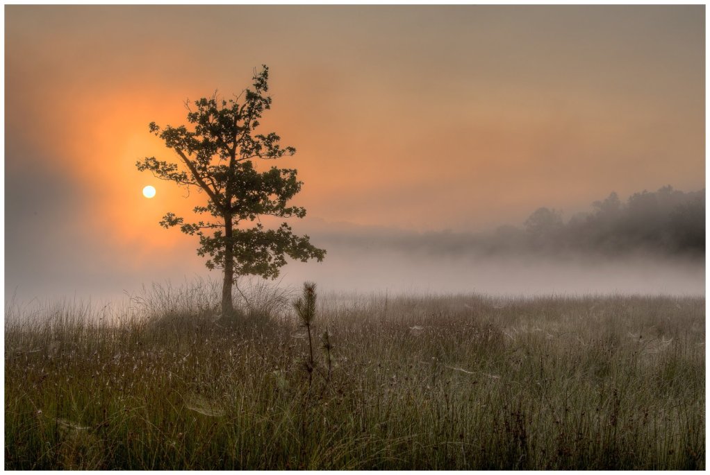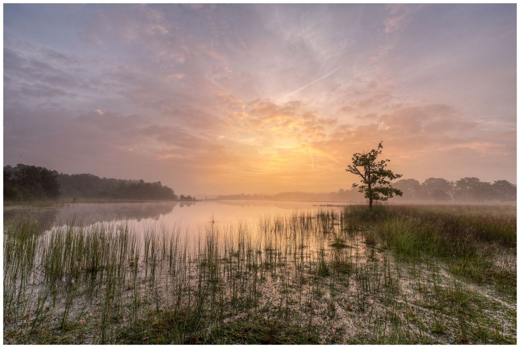 Naar het Leersumse Veld ga ik om het landschap en de daarin levende insecten te fotograferen. Het landschap is heel divers en biedt veel fotomogelijkheden. Met name in de vroege ochtend wanneer er nevel over de heide ligt en de zonsopkomst voor een kleurrijke hemel zorgt. Wanneer op zo’n moment ook nog eens de dopheide bloeit, dan is het helemaal feest. Maar…mijn favoriete plek is het 2e ven. Hier komt veelal de zon mooi aan de andere kant van het water op. Met nevel levert dat betoverende beelden op.