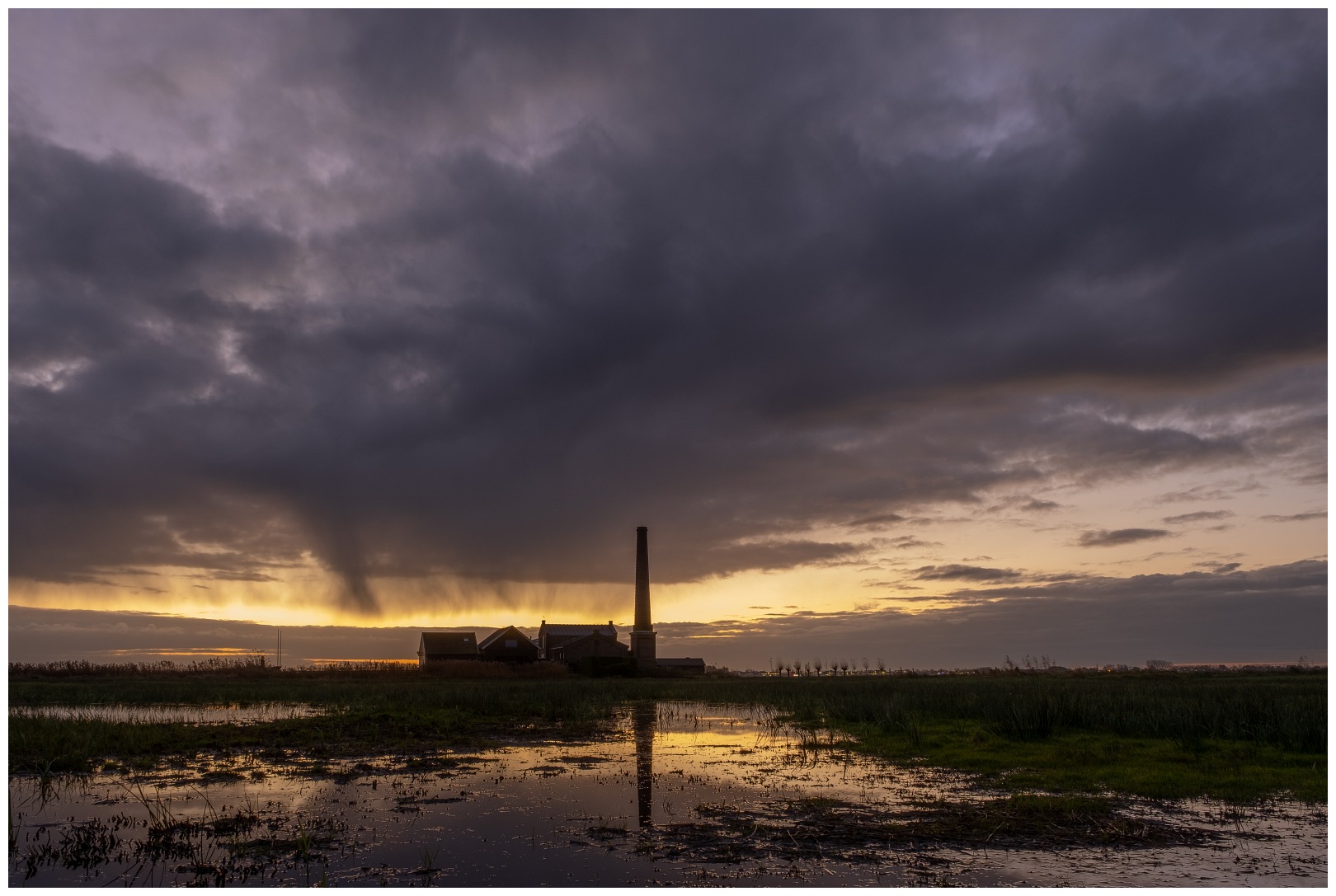 De Arkemheenpolder is voor de vogelfotograaf eigenlijk het hele jaar door interessant en dat bleek gisteren maar weer. Voor dag en dauw ontmoet ik twee van mijn fotomaatjes op de parkeerplaats van Stoomgemaal Arkemheen. Nee, niet om in het donker op zoek te gaan naar vogels, maar om de opkomende zon achter het gemaal te fotograferen. Helaas vallen de kleuren wat tegen, bovendien is het koud en nat, dus laten wij het gemaal en de zonsopgang voor wat het is. De ‘korte lens’ op de camera wordt verwisseld voor de ‘lange lens’ (500 mm). Het blijft lang grijs en donker, dus geen ideale omstandigheden om vogels te fotograferen. Stiekem hopen wij vandaag weer de torenvalk te ontmoeten. Een prachtige vogel die wij een tijd geleden al eens voor de lens hadden en zich gemakkelijk laat fotograferen tijdens koude ochtenden. Wij rijden een voor ons bekend rondje in onze mobiele fotohut zonder een glimp op te vangen van de torenvalk.