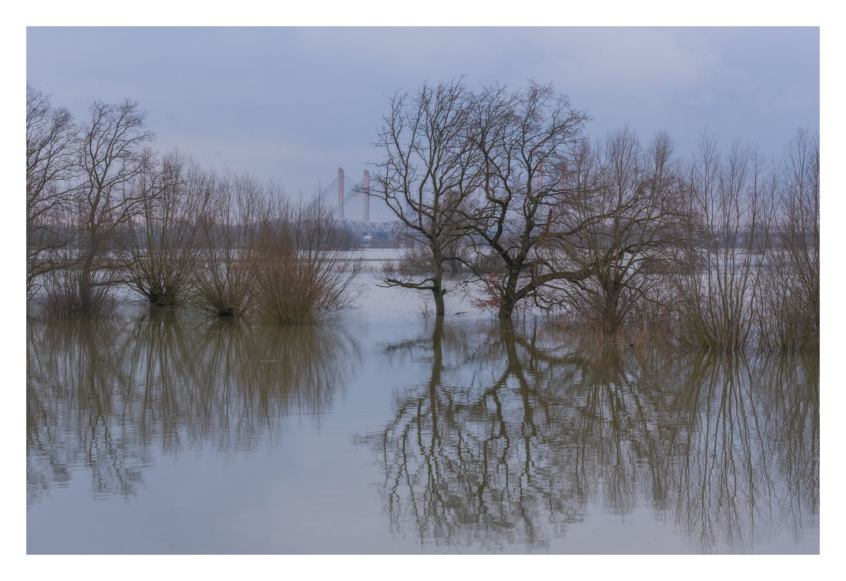Hoe spannend dat ook moet zijn voor de inwoners dichtbij de rivier, fascinerend is het wel om te zien. Bijzonder is het dan dat de natuurgebieden waar je normaal gesproken doorheen kunt struinen helemaal onder water staan. Deze gebeurtenis trekt vele kijkers en onder hen was ik er een van.