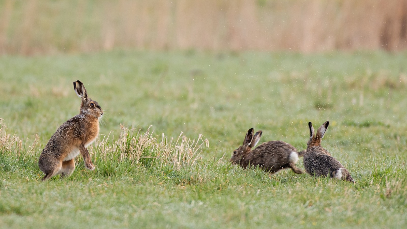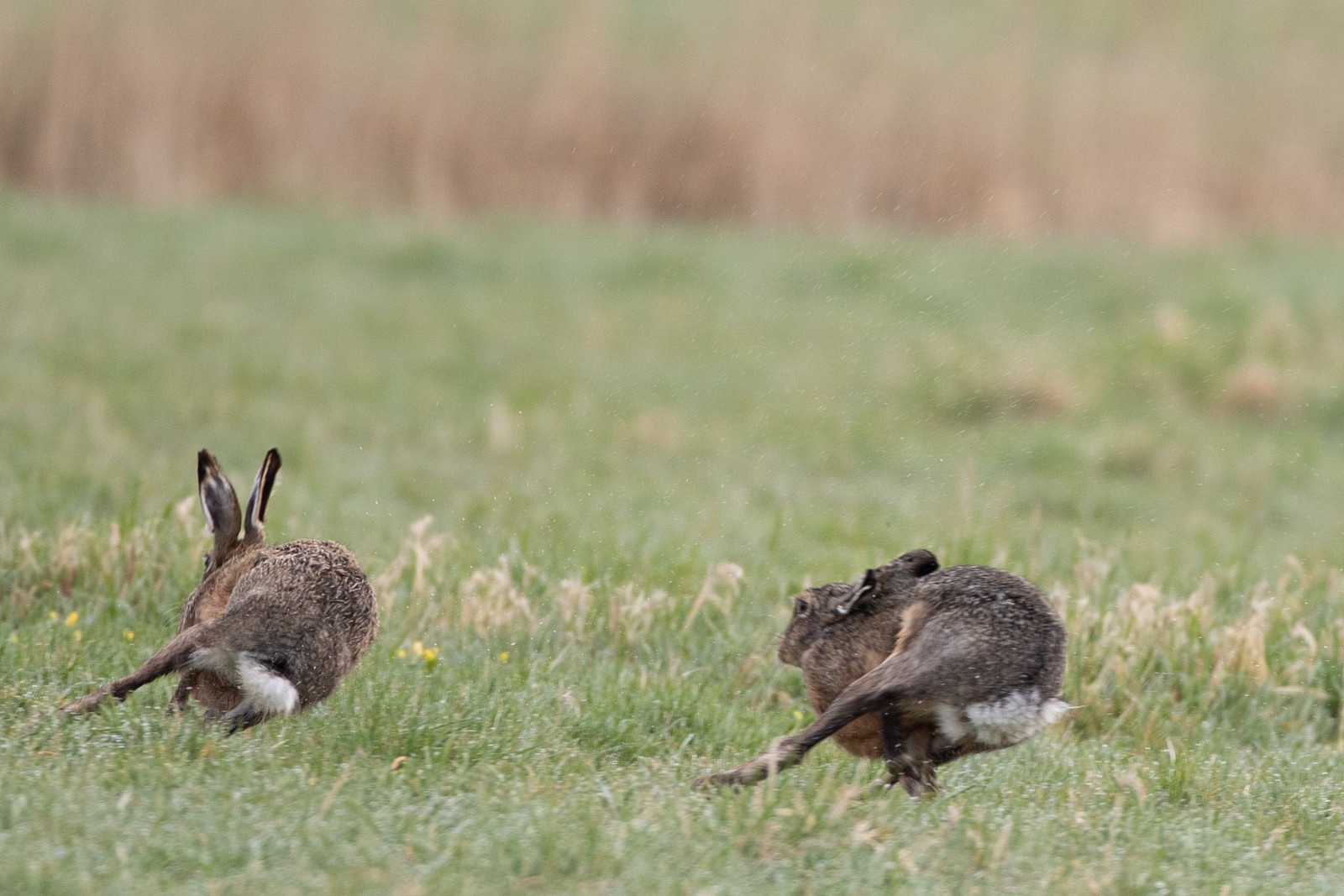 Dit vermakelijke schouwspel mocht ik samen met twee van mijn fotokameraden op 2 april ’21 aanschouwen. Plaats van handeling was de Arkemheenpolder, het Nekkeveld om precies te zijn. Naast de rammelende hazen waren ondermeer ook flink veel grutto’s, tureluurs en graspiepers te zien. Ook deze vogels waren druk met de hofmakerij, waardoor de polder een levendig gebied was.