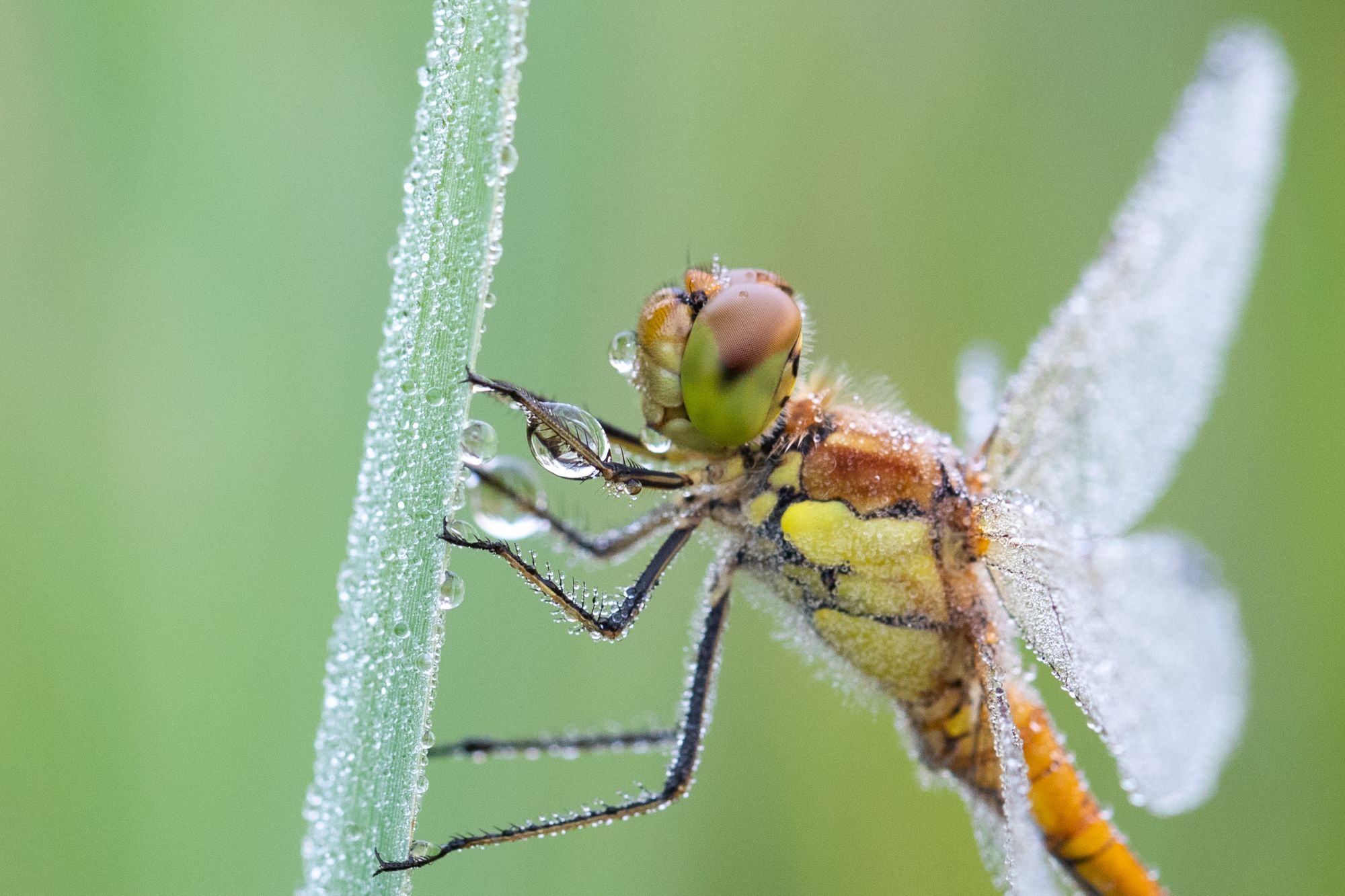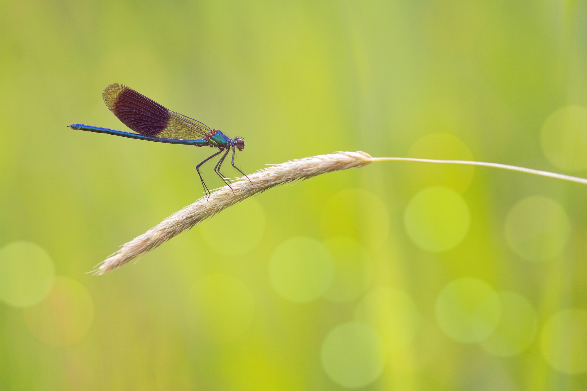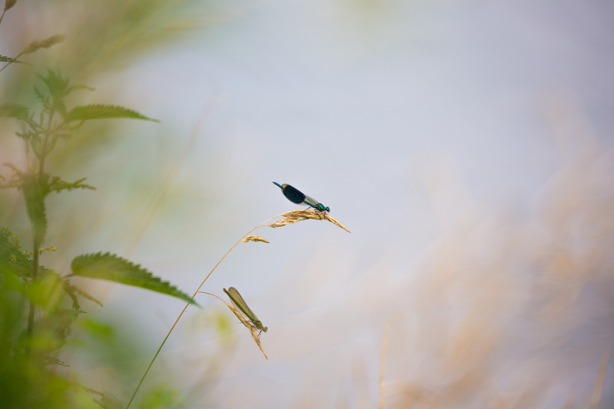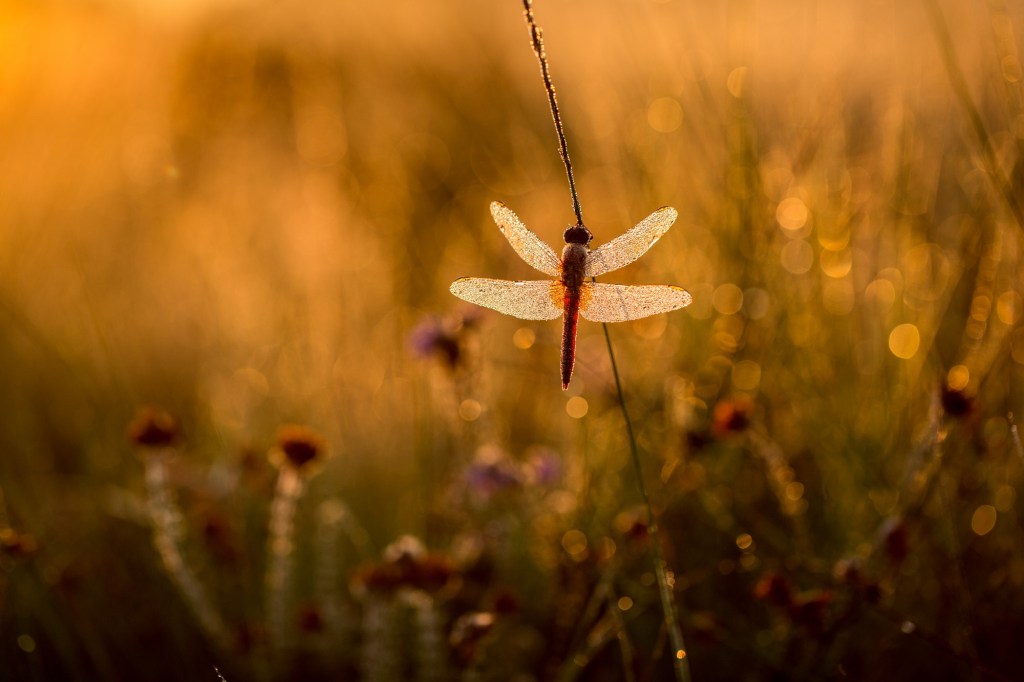 Bij macrofotografie sta ik ook geregeld voor hetzelfde dilemma: (heel) dichtbij of juist verder weg fotograferen? Als ik, zoals op de foto’s, een weidebeekjuffer zie, dan is de verleiding groot om deze van zo dicht bij mogelijk te fotograferen. Met mijn 100 mm macrolens is dit weliswaar mogelijk, maar dan moet de juffer wel blijven zitten. ’s Morgens vroeg als de zon nog niet op de dieren schijnt, is het mogelijk om heel dichtbij te komen.