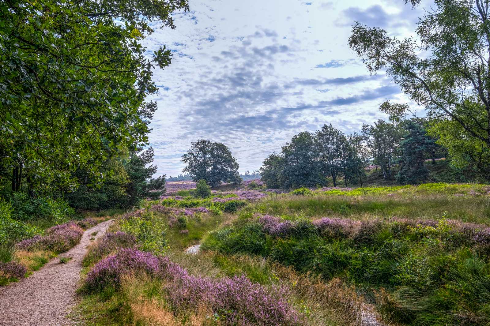 Aanvankelijk volgen wij de route door het bos waarin de Wodanseiken staan, of ….zouden staan. Na enige omzwervingen vonden wij inderdaad enkele overgebleven exemplaren. Helaas waren deze meer dood dan levend. Gelukkig heeft het natuurgebied meer te bieden dan de eiken. Zo kent het een mooi glooiend heidegebied. Vooraal als de heide er in bloei staat, is het prachtig om daar doorheen te lopen.
