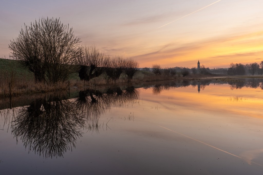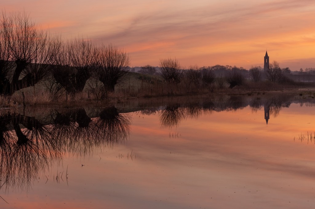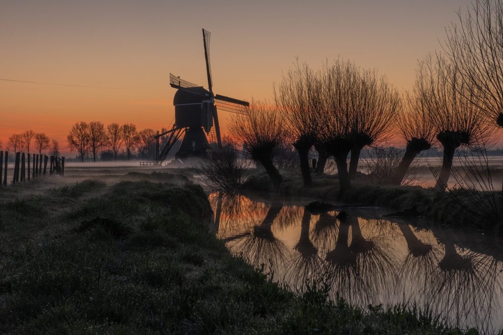 Knotwilgen, molens en water. Hollandser kan het in mijn ogen haast niet. Een mooie, kleurige zonsopkomst en mist maken het helemaal af.