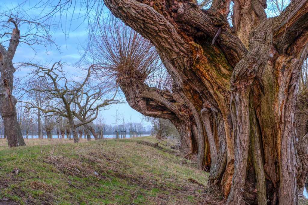 De Goibeldingerwaard aan de Lek. Tussen Culemborg en Everdingen, direct naast Fort Everdingen, ligt een kleine oude boomgaard met hoogstamfruitbomen. Deze boomgaard, de Armenboomgaard, was ooit eigendam van de Rooms Katholieke kerk. De opbrengst van de gaard was bestemd voor de armen uit de omgeving. Vandaag de dag zet het Geldersch Landschap en Kastelen deze traditie voort. Bovendien staat de Armenboomgaard sinds kort op de Wereld Erfgoedlijst. Aan de rand van de boomgaard staan op een dijkje een aantal oeroude knotwilgen. De hoogbejaarde leeftijd heeft overduidelijke haar sporen achtergelaten. Het is juist de extreme grilligheid die deze krasse knarren zo fotogeniek maakt. Je kunt deze knotwilgen niet echt vanaf een afstand fotograferen. Gelukkig bieden zij meer dan voldoende mogelijkheden om de details te fotograferen.