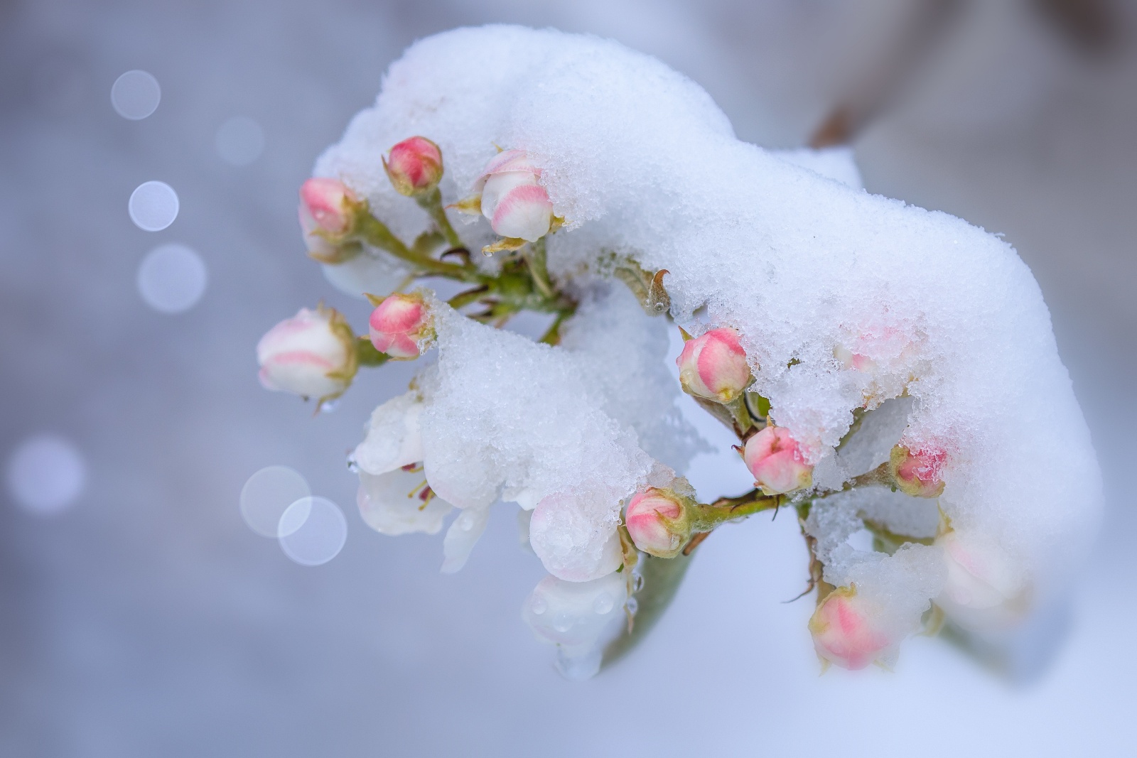 Wie had verwacht dat na een zonovergoten periode, Nederland op 1 april ’22 zou veranderen in een winterwereld? Velen zullen gedacht hebben aan een 1 april grap van het KNMI, maar dat was het zeker niet! Grote delen van Nederland waren inderdaad op die bewuste ochtend bedekt met een laag sneeuw. Prachtig natuurlijk, maar voor de natuur waar van alles al in de knop of zelfs in bloei staat, zeker niet best. Vooral voor de fruittelers kan de vorst wel eens een ramp betekenen. Met name de kersenboomgaarden in de omgeving waar ik woon, staan al volop in bloei.