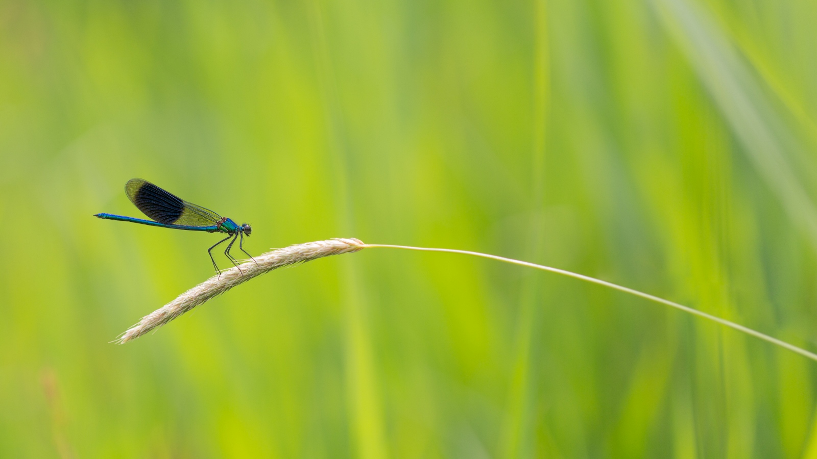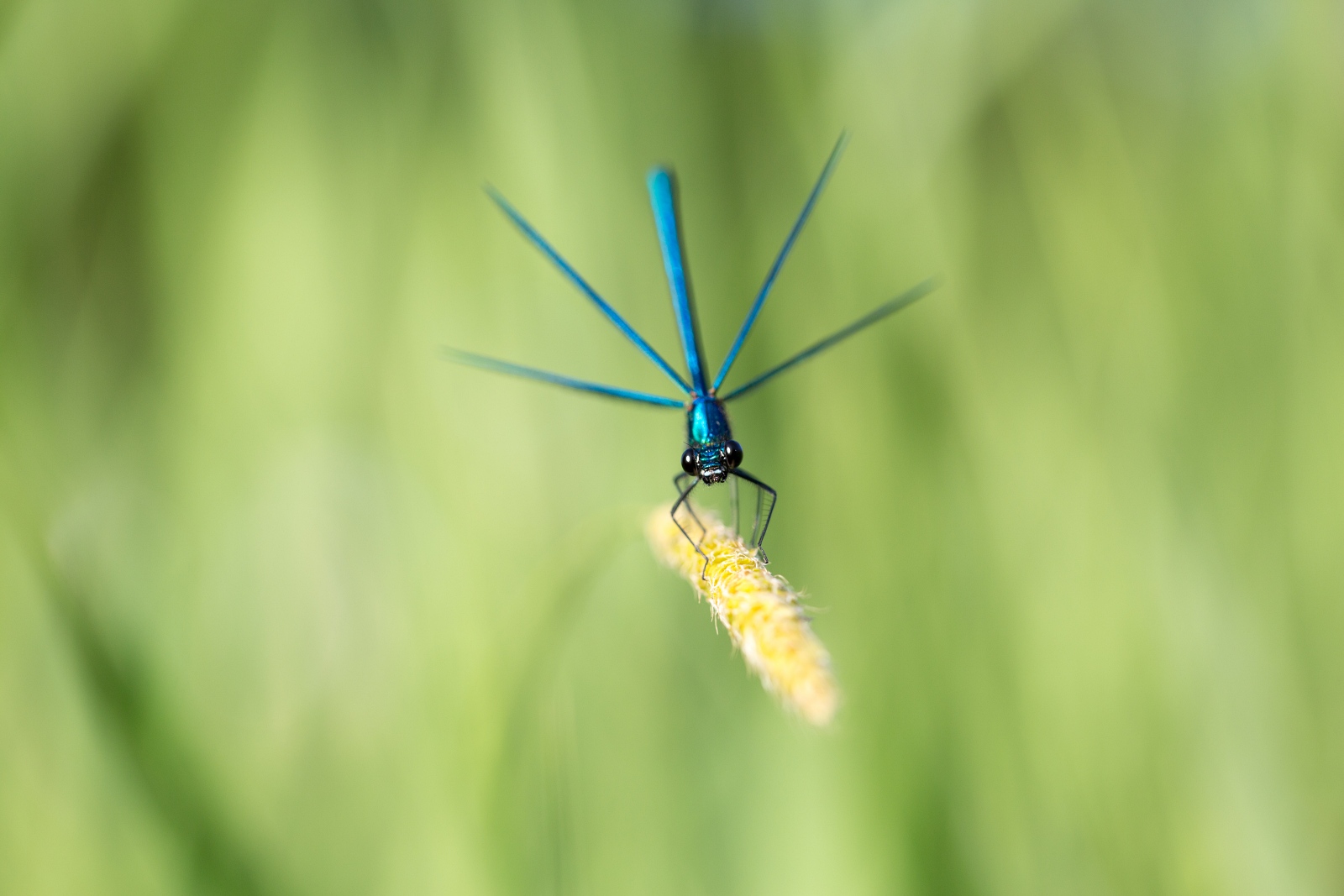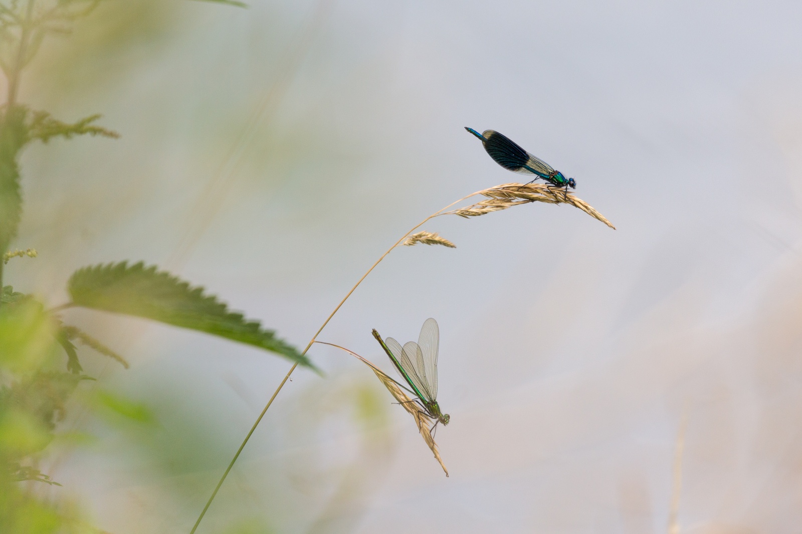 Er zijn weer insecten en met regelmaat frisse ochtenden. Tijd dus om de juiste lens voor macro en close up opnames op de camera te schroeven. In aansluiting op het vorige verhaal waarin het icarusblauwtje de hoofdrol speelde, nu een andere blauwe soortgenoot: de weidebeekjuffer.
