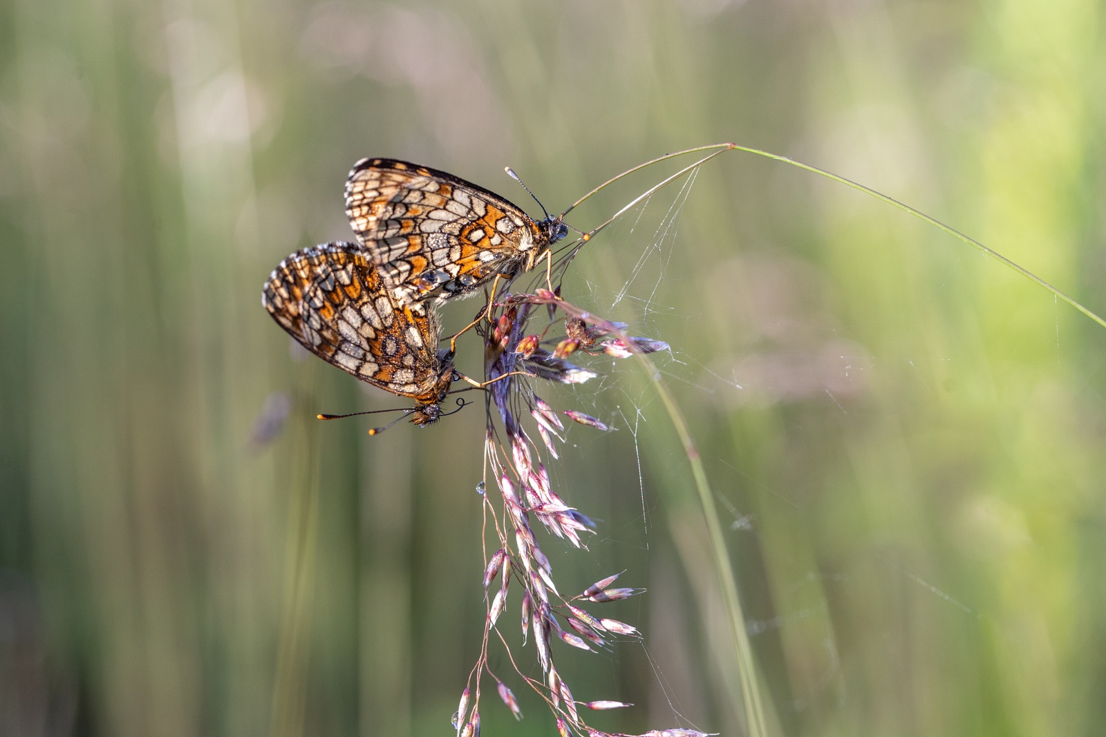 Plotseling zie ik iets waar ik vanmorgen helemaal niet op gerekend had. Een bosparelmoervlinder vinden vond ik al een hele ervaring, maar een parend koppel…. Mijn ochtend kon al niet stuk, nu al helemaal niet meer. Het stelletje zit niet echt geweldig fotografisch gezien, maar ja who cares? Een foto van dit intieme en bijzondere gebeuren kan ik in ieder geval toevoegen aan mijn bosparelmoervlinder-palmares. En….dat in één ochtend….