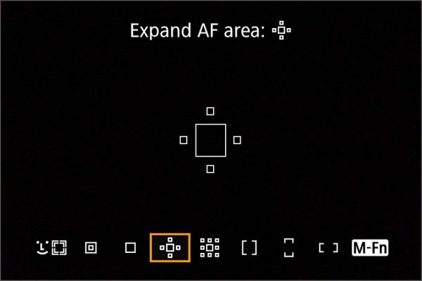 - Expanded AF Area – Uitgebreid focusgebied: Single focuspunt gebied met 4 helpers of hulp focuspunten. De helpers komen automatisch in actie wanneer het ingestelde focuspunt naast het single focuspunt komt te liggen.