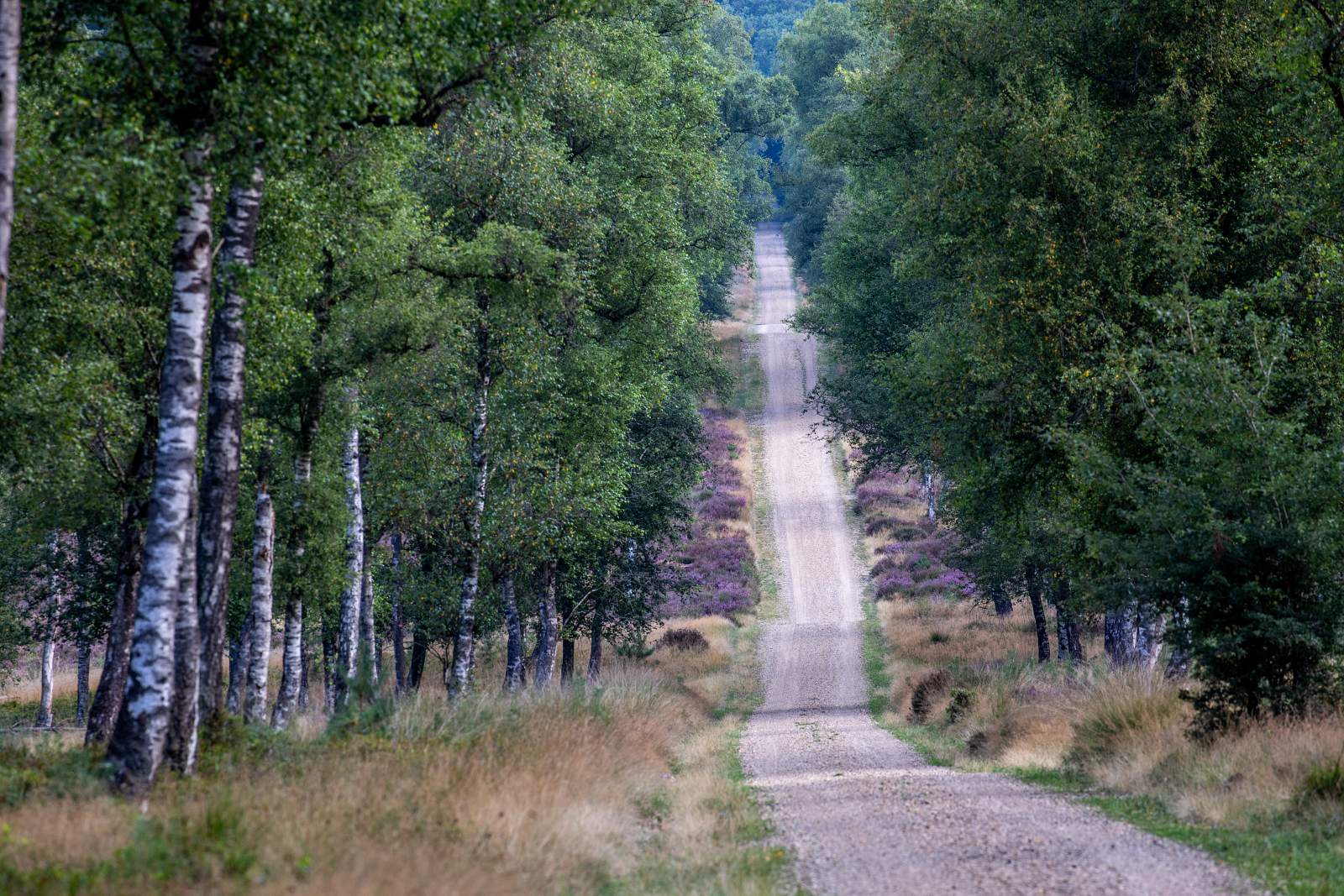The forest paths we cycle on are not all equally easy to drive on. For example, we have to deal with paths with loose sand that also require considerable climbing and descending. It is a part of the forest in which old moraines are formed during the ice age. Some of these ramparts are seriously steep and challenging to cycle. After the ordeal we arrive at a beautiful point. A place where you can clearly see the difference in height. The gravel path leads perpendicularly into a valley to go up on the other side. Such a point and view naturally demands to be photographed.