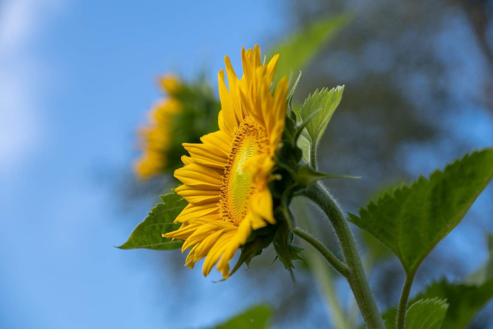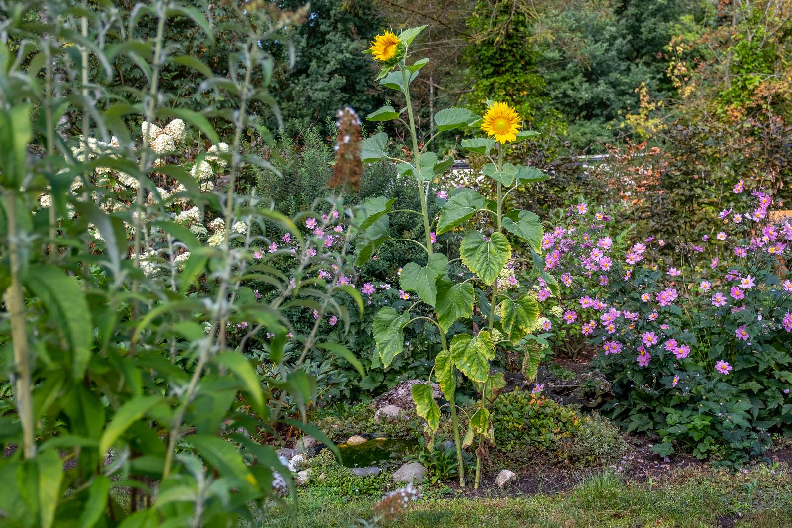Last winter and spring we helped the birds find food in our garden at the campsite. We hung up the usual fat balls with insects and fruits and filled baskets with different kinds of seed. Next to the birdbath we place a bowl with sunflower seeds on it. A few weeks ago, 2 plants spontaneously started to grow in that spot. At first I didn’t really have a clue what kind of plant it was. At the beginning of August, however, it became clear that this was the sunflower. Well, birds don’t always eat neatly and it could happen that two sunflower seeds ended up next to the dish. In mid-August, two beautiful, about one and a half meters high sunflower plants with a beautiful flower in the crown adorn the garden.