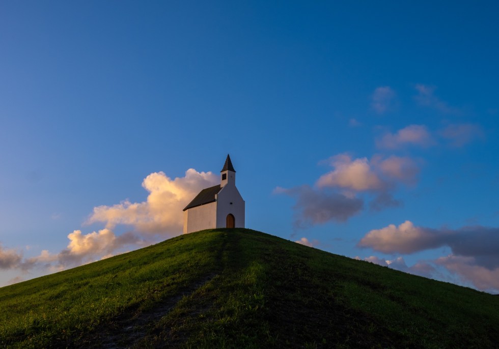 Een ander voorbeeld van een onverwachte toegift deed zich voor tijdens mijn bezoek aan het Kerkje op de Terp in Leidschenveen. Daar kwam de zon op achter de terp gedurende een wolkenloze hemel. Kort na opkomst verschenen er echter plotseling uit het westen enkele wolken. Deze werden mooi verlicht door het strijklicht van de zon. Leek het aanvankelijk uit te draaien op een korte fotosessie, zo kon ik onverwacht tot een paar uur na de zonsopkomst nog (na)genieten.