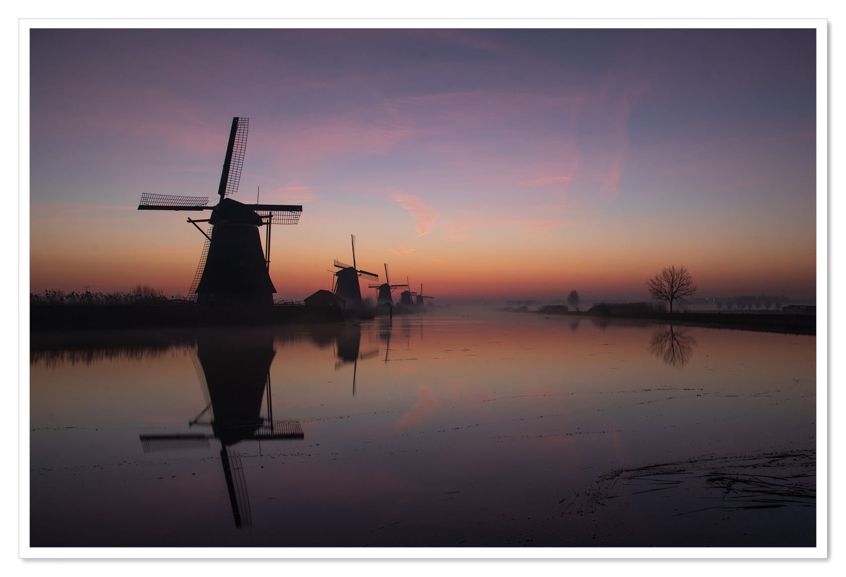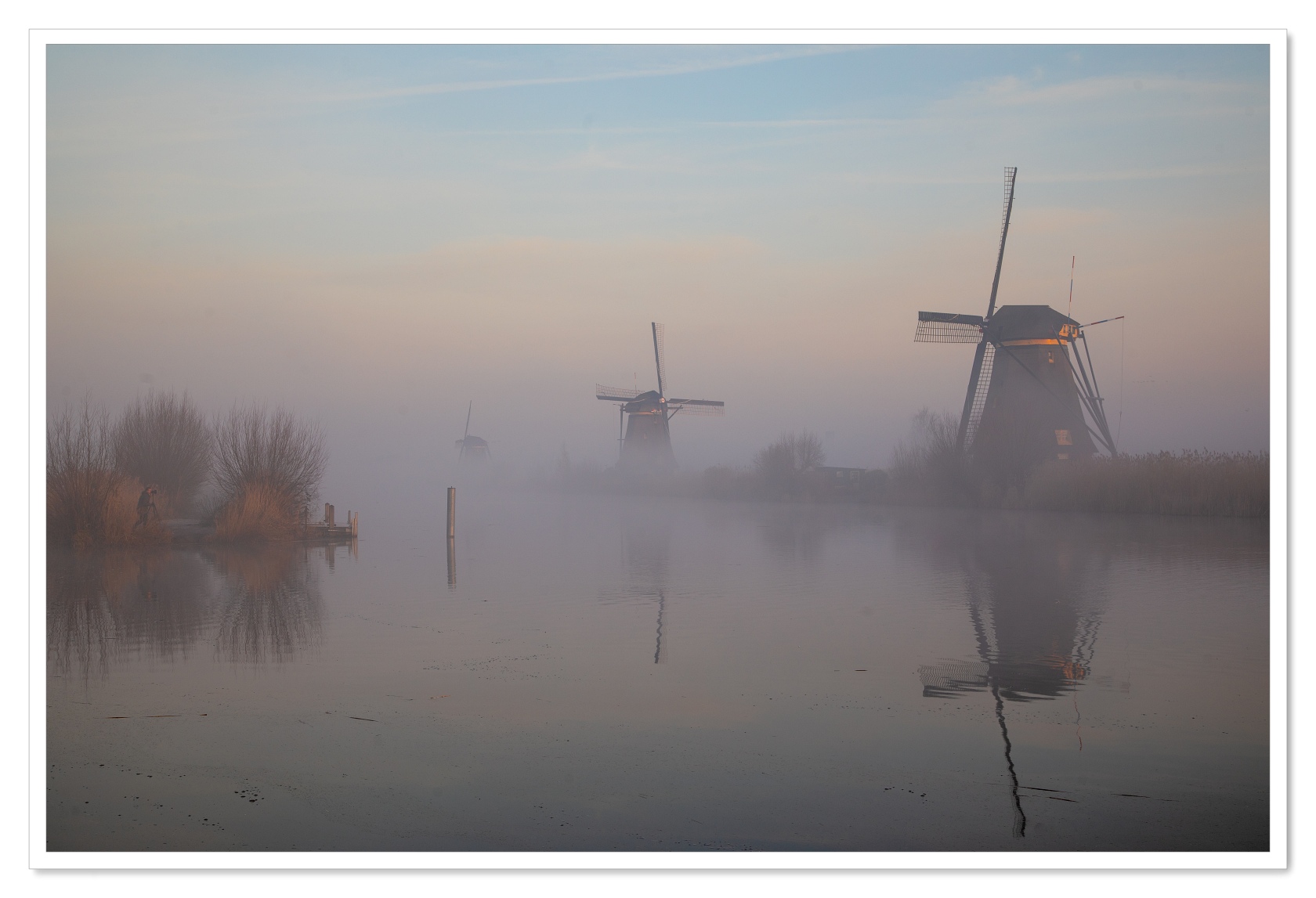 Zoals jij deze serie van de molens hebt geplaatst nodigt echt uit om daar ook te gaan fotograferen. Deze ochtend hadden wij alles mee, pracht blauwe uurtje, opkomende zon met daarbij flink opkomende nevel, en rimpelloos water. Dit zijn de ingrediënten die je als fotograaf graag wil. Geniet van bovenstaande foto’s.