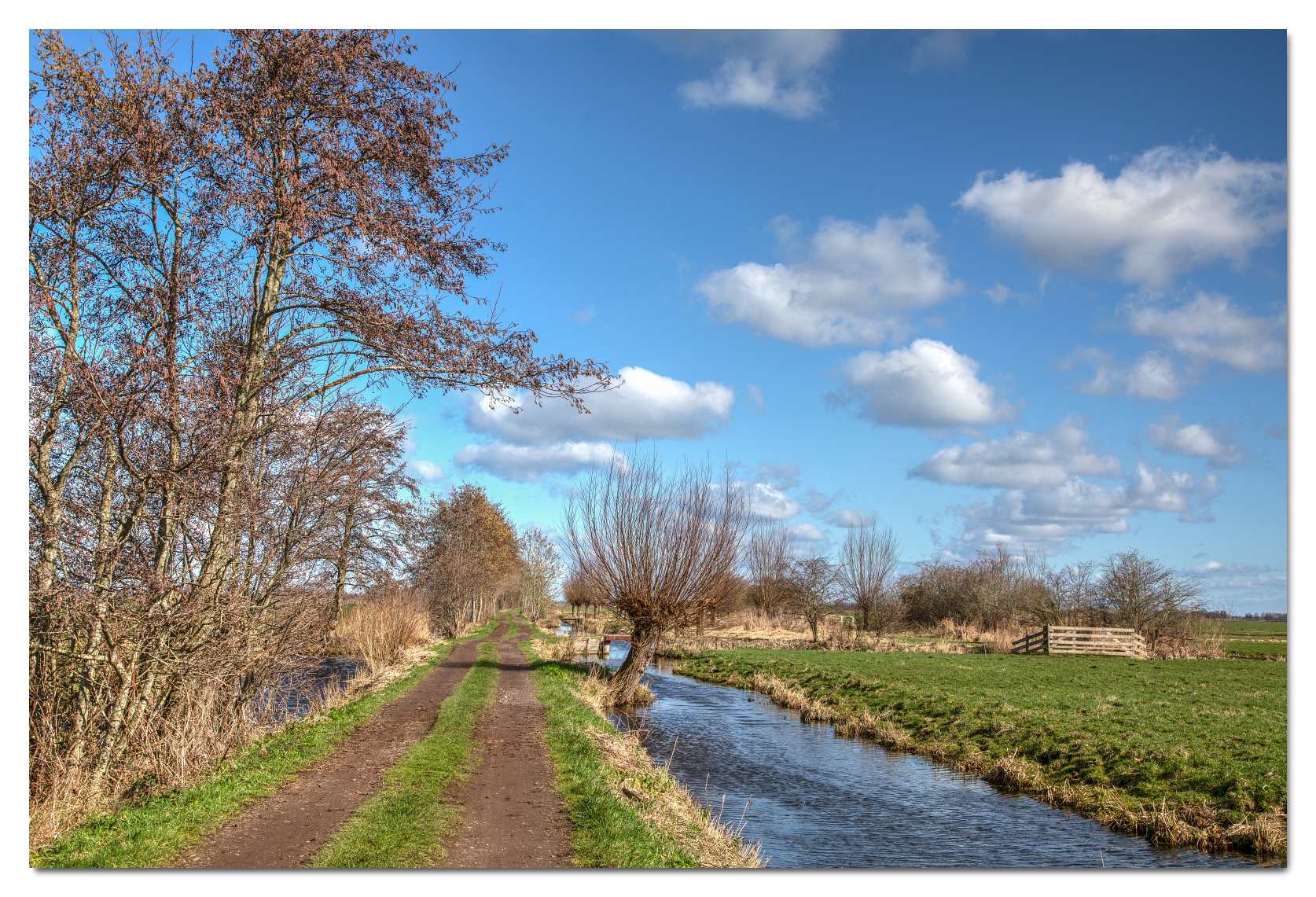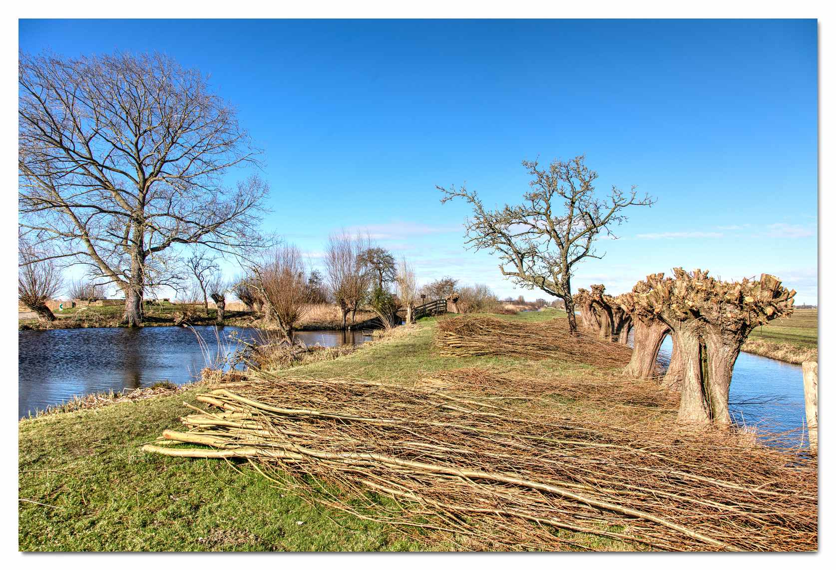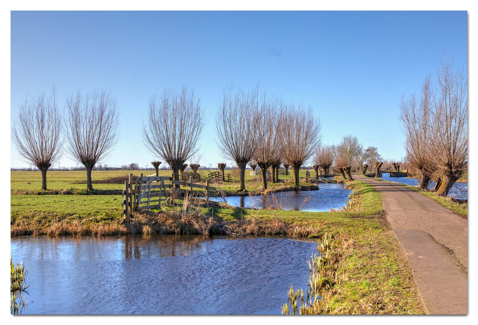 De Berkenwoudse Boezem doorkruis je via een brede kade met, pas geknotte wilgen