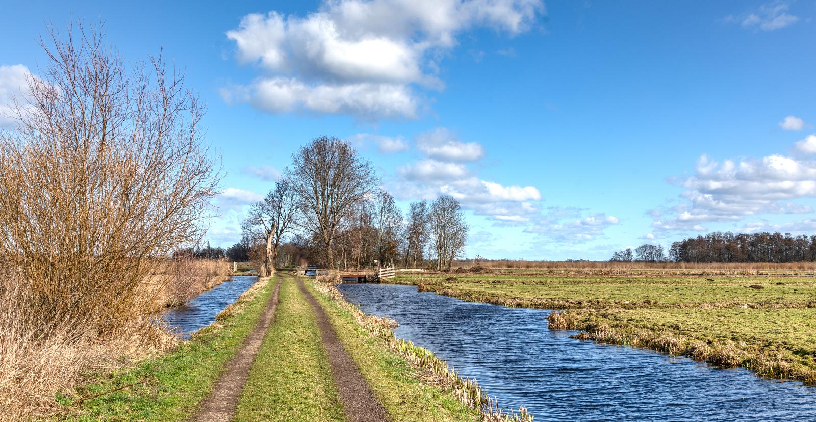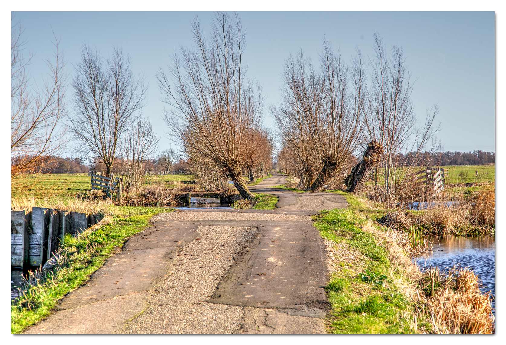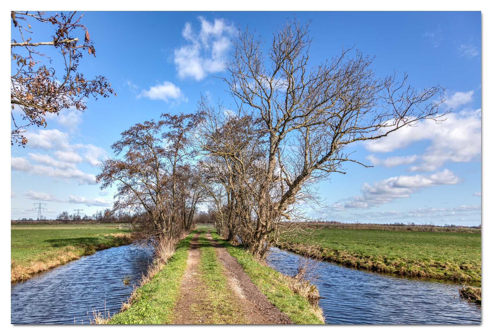 De Berkenwoudse Boezem doorkruis je via een brede kade met, pas geknotte wilgen