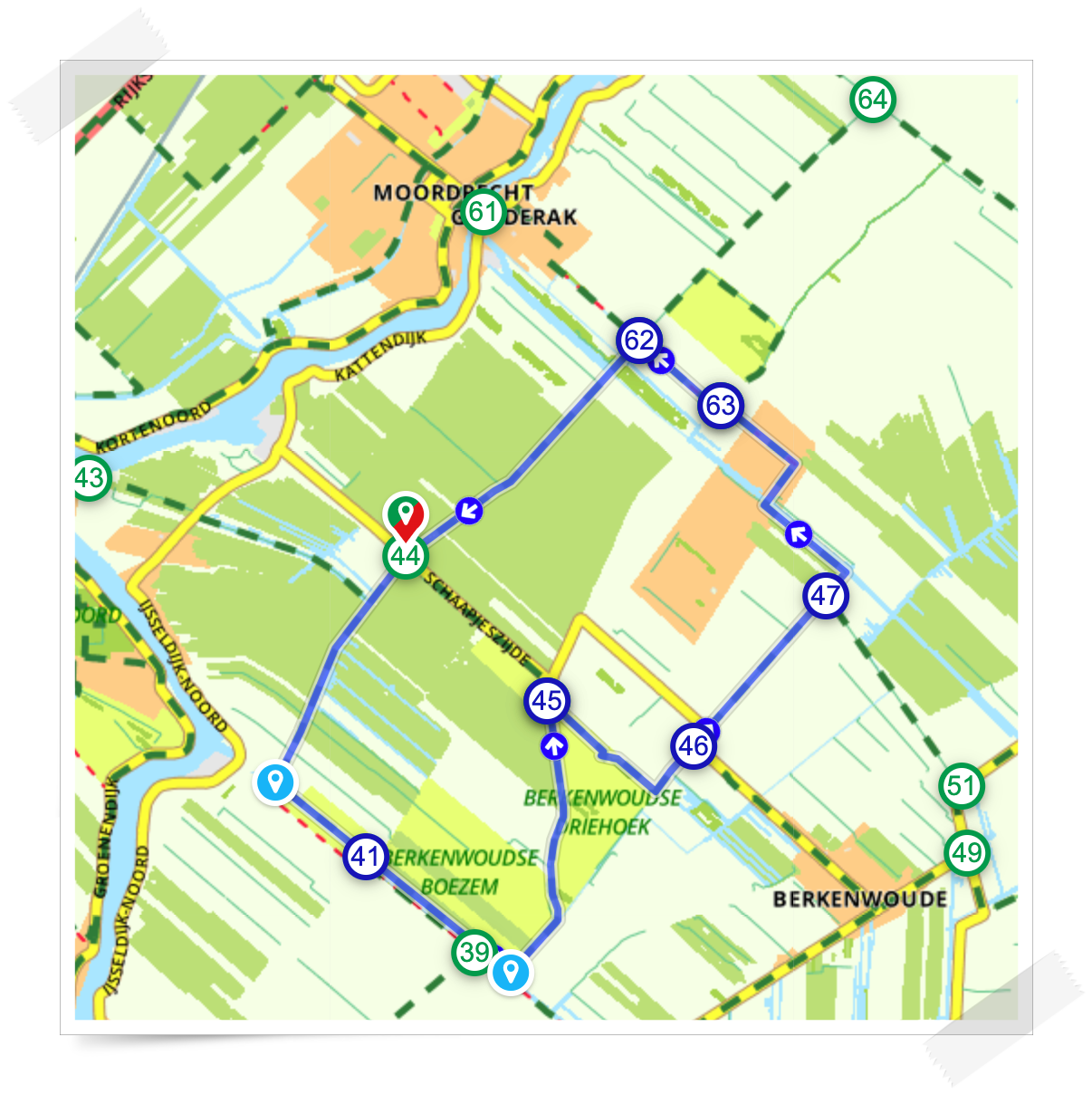 Kaartje van de route die wij liepen, waarbij onze start in Gouderak was bij wandelknooppunt 61