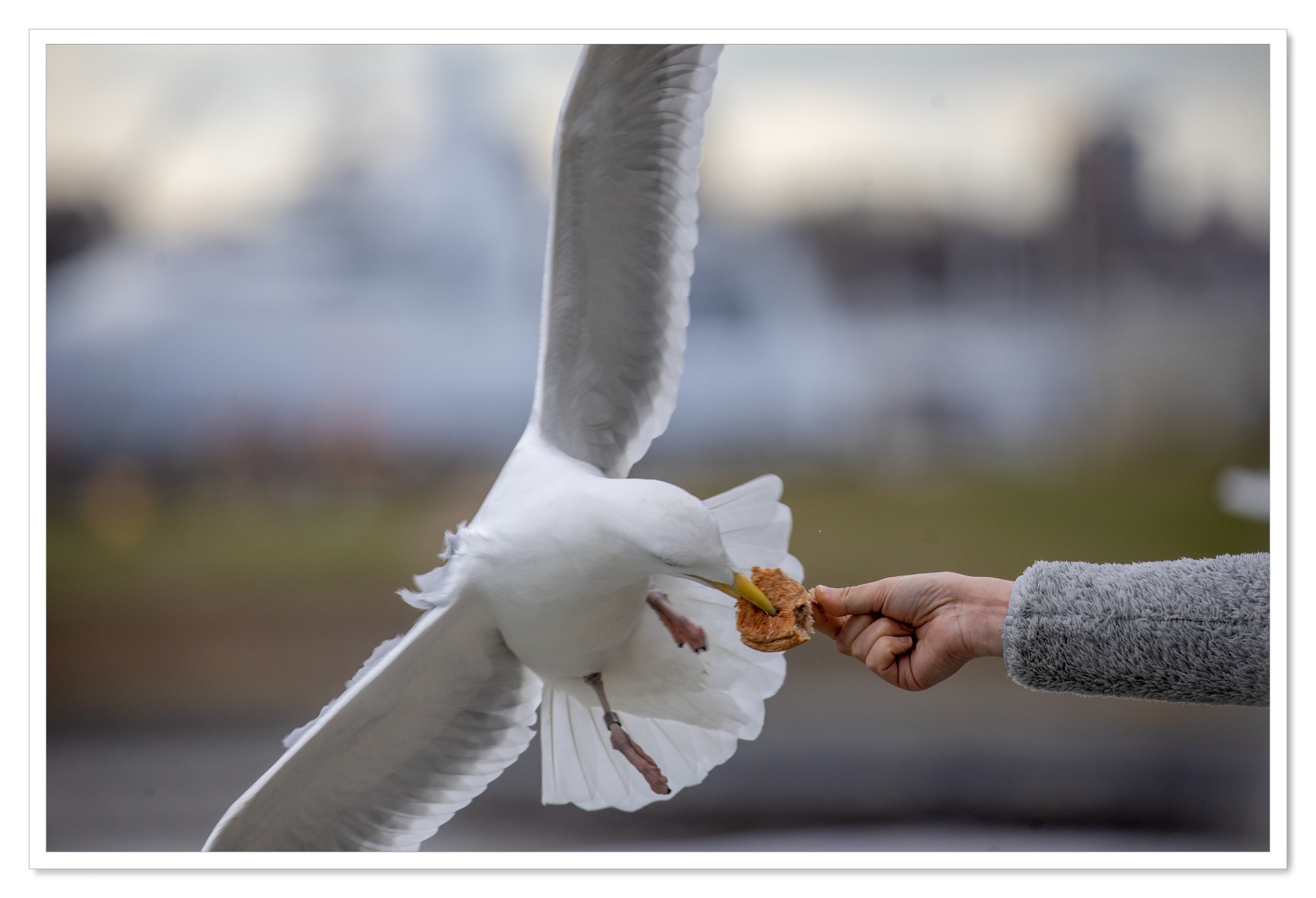 Tijdens de overvaart naar Texel is het voor menig passagier een sport om een meeuw uit de hand te voeren