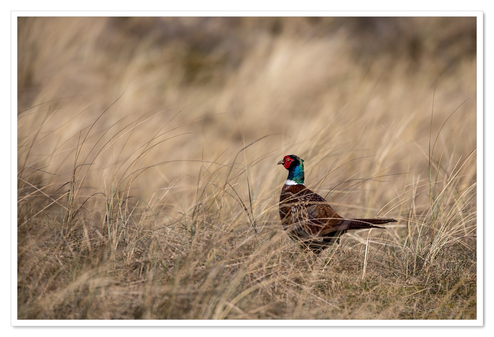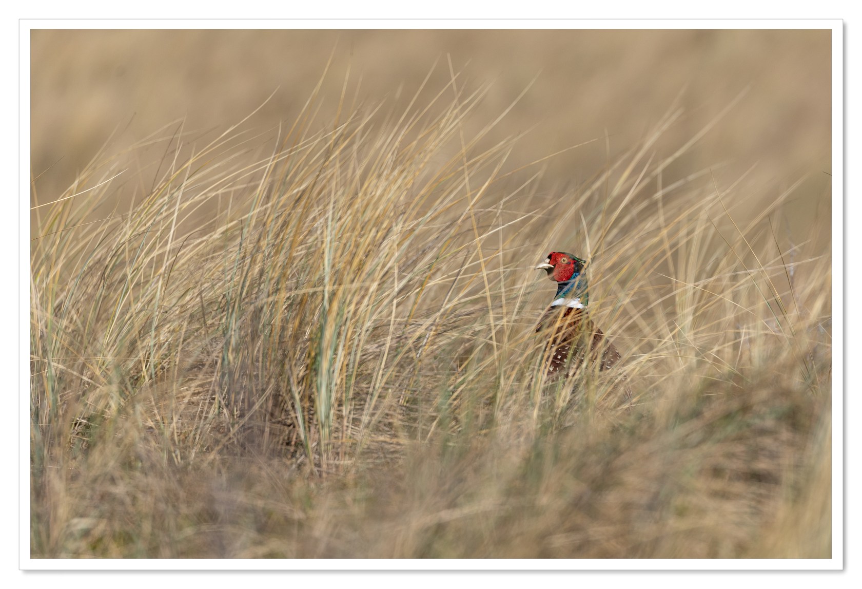 Dezelfde fazant als hierboven, alleen dit maal houdt hij zich wat meer schuil