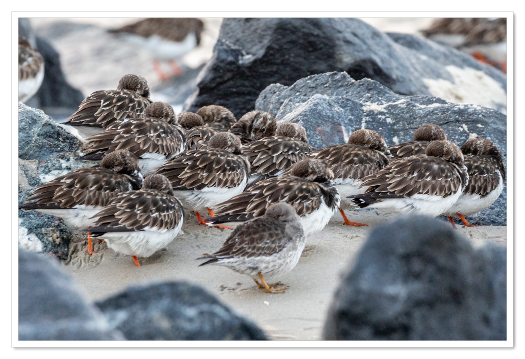 Ook een groep kleine steenlopers doet een dutje op de stenen van een strekdam