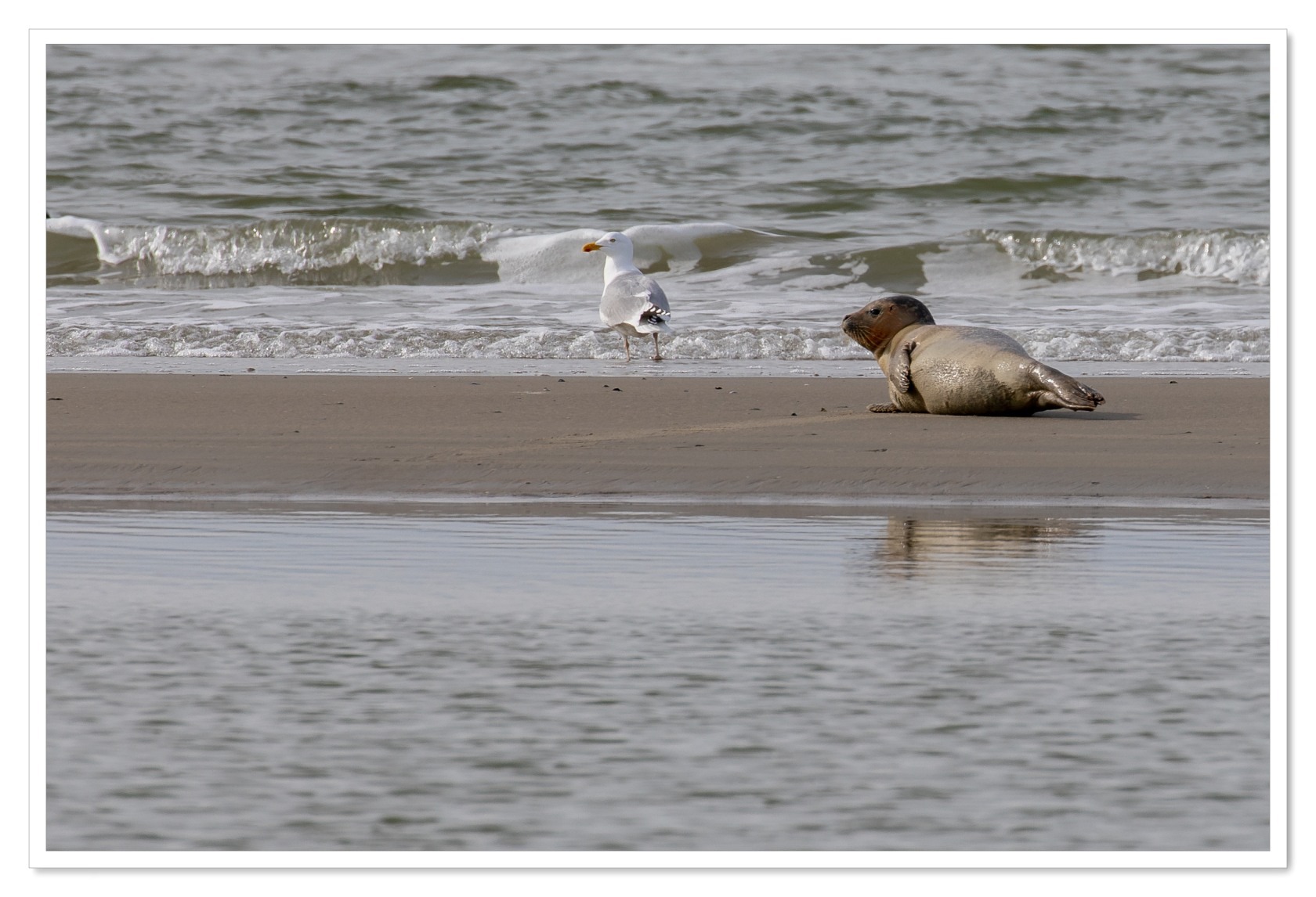 Tot slot nog een foto van de ontmoeting tussen een zeehond en een zilvermeeuw