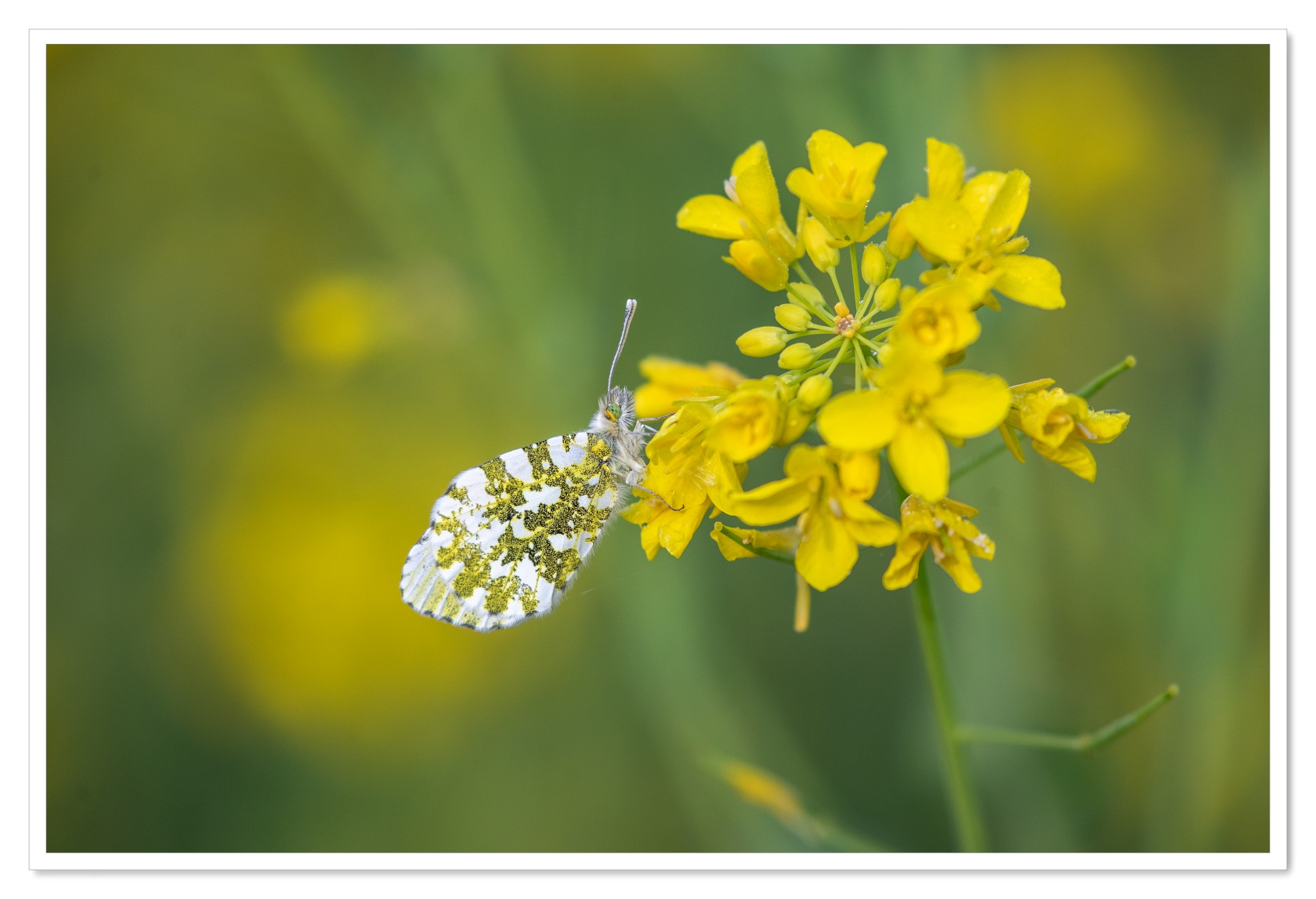Niet alleen op de pinksterbloem is het oranjetipje te vinden, maar ook op, zoals hier, de bloem van het koolzaad