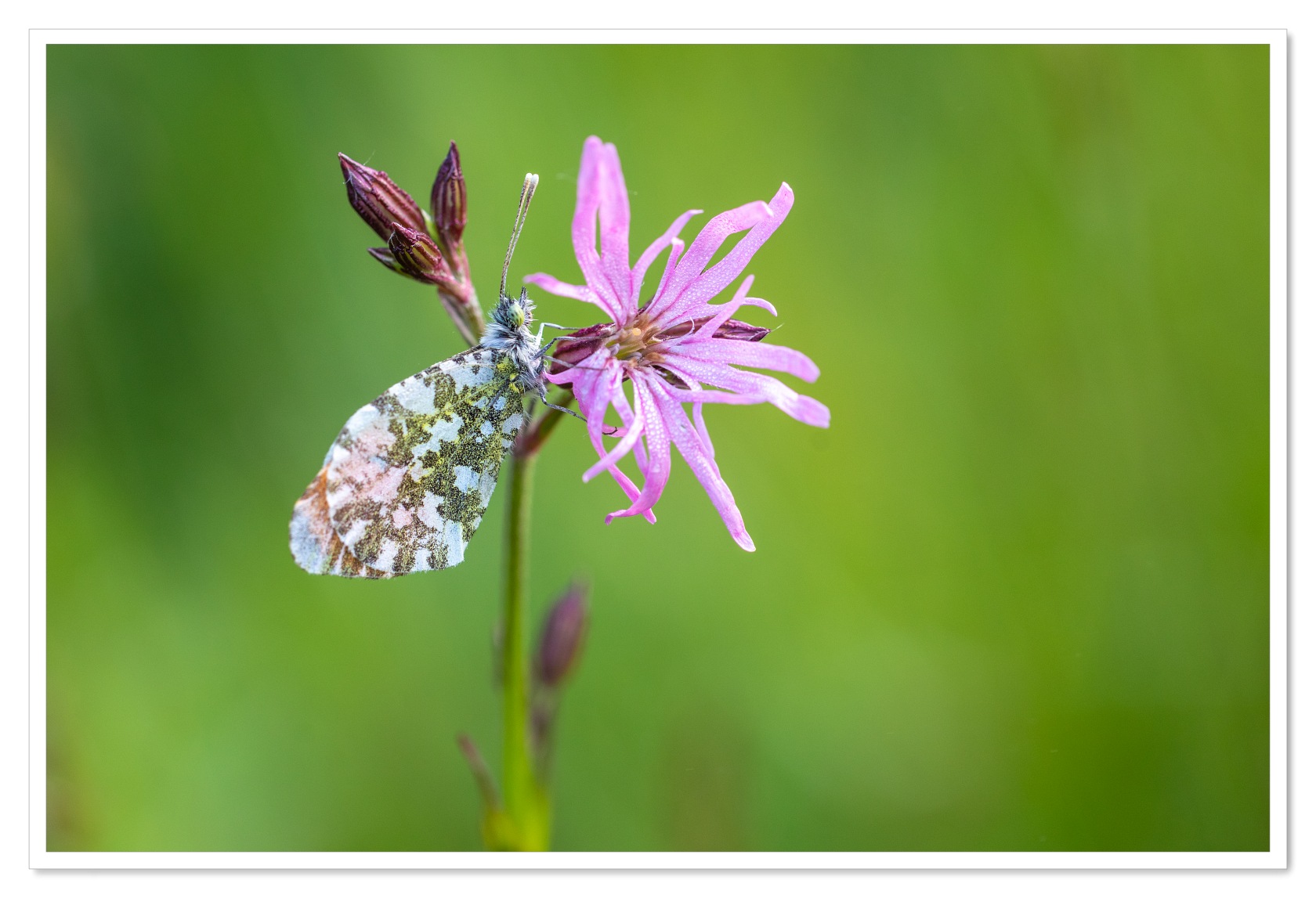 Het is april, het begin van het vlinderseizoen in Nederland dus op zoek naar een van de eerste voorjaarsvlinders: het oranjetipje. Zodra de pinksterbloemen bloeien zouden zij te vinden moeten zijn. De pinksterbloem speelt namelijk een belangrijke rol in het leven van het oranjetipje. Zo is het, naast o.a. look zonder look, een geliefde waardplant van het oranjetipje. Of te wel; de plant waarop het vrouwtje haar eitje afzet èn de plant die zorgt voor de noodzakelijke nectar voor het oranjetipje. Geen wonder dat deze vlinder veel op en bij de pinksterbloem te vinden is.