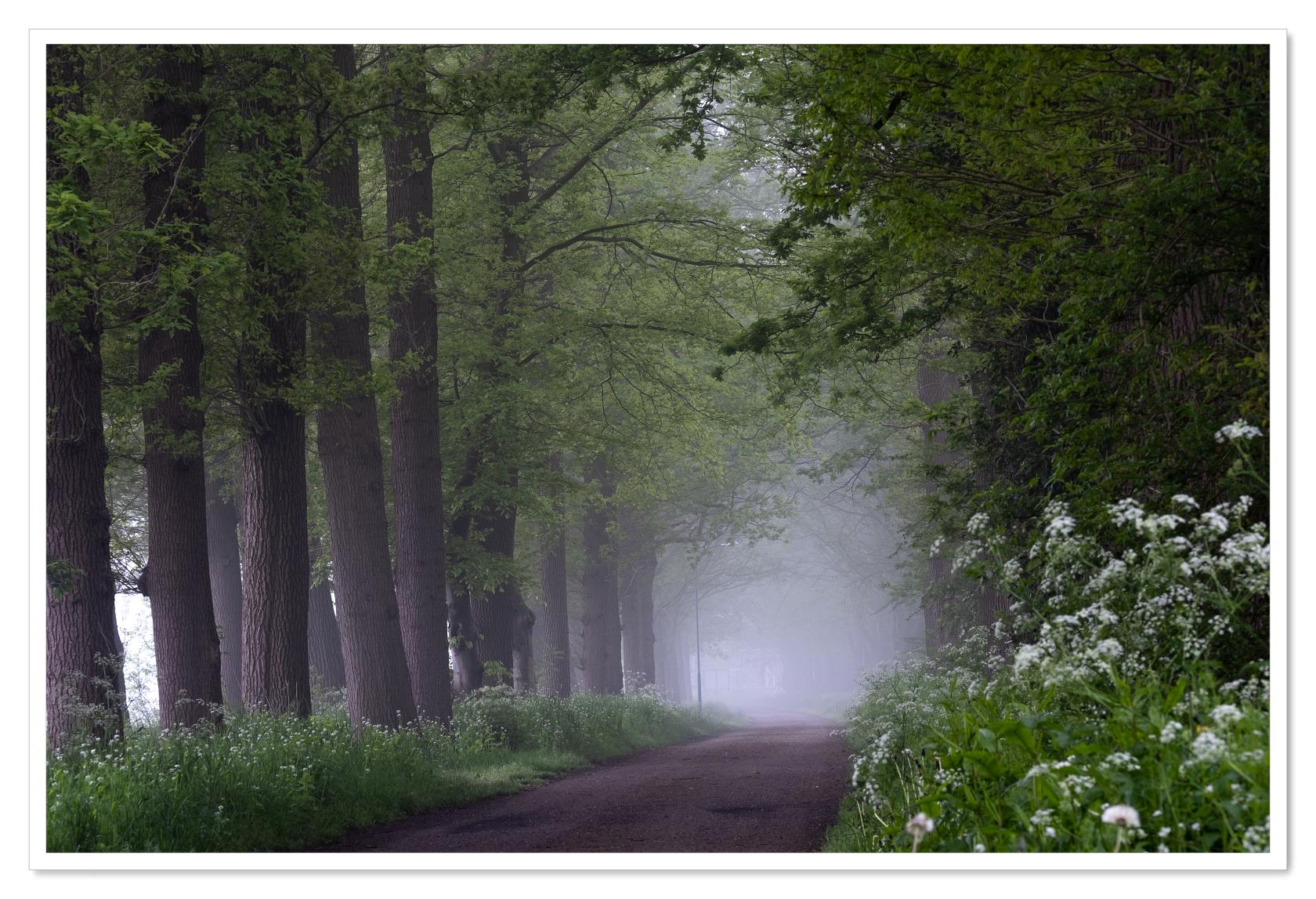 Fluitenkruid langs de berm van een weg op een mistige ochtend – Werkhoven, Utrecht