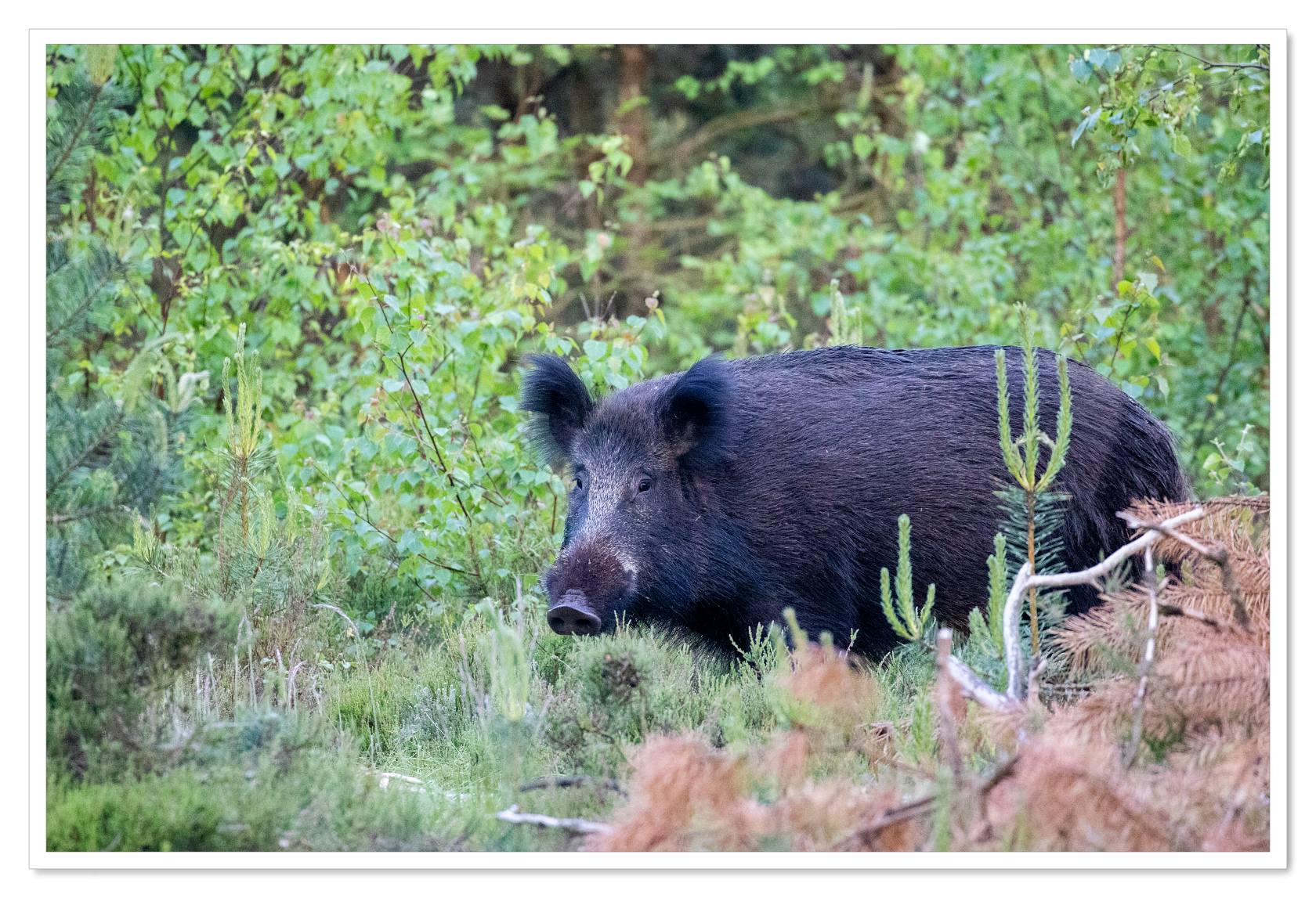 Een everzwijn wroet enkele meters van de weg niets vermoedend de aarde om op zoek naar voedsel. Totdat deze merkt dat hij bespiedt wordt en ervandoor ging. Bijzonder toch dat zo een sterk dier net zo bang is van ons als wij van hen ……
