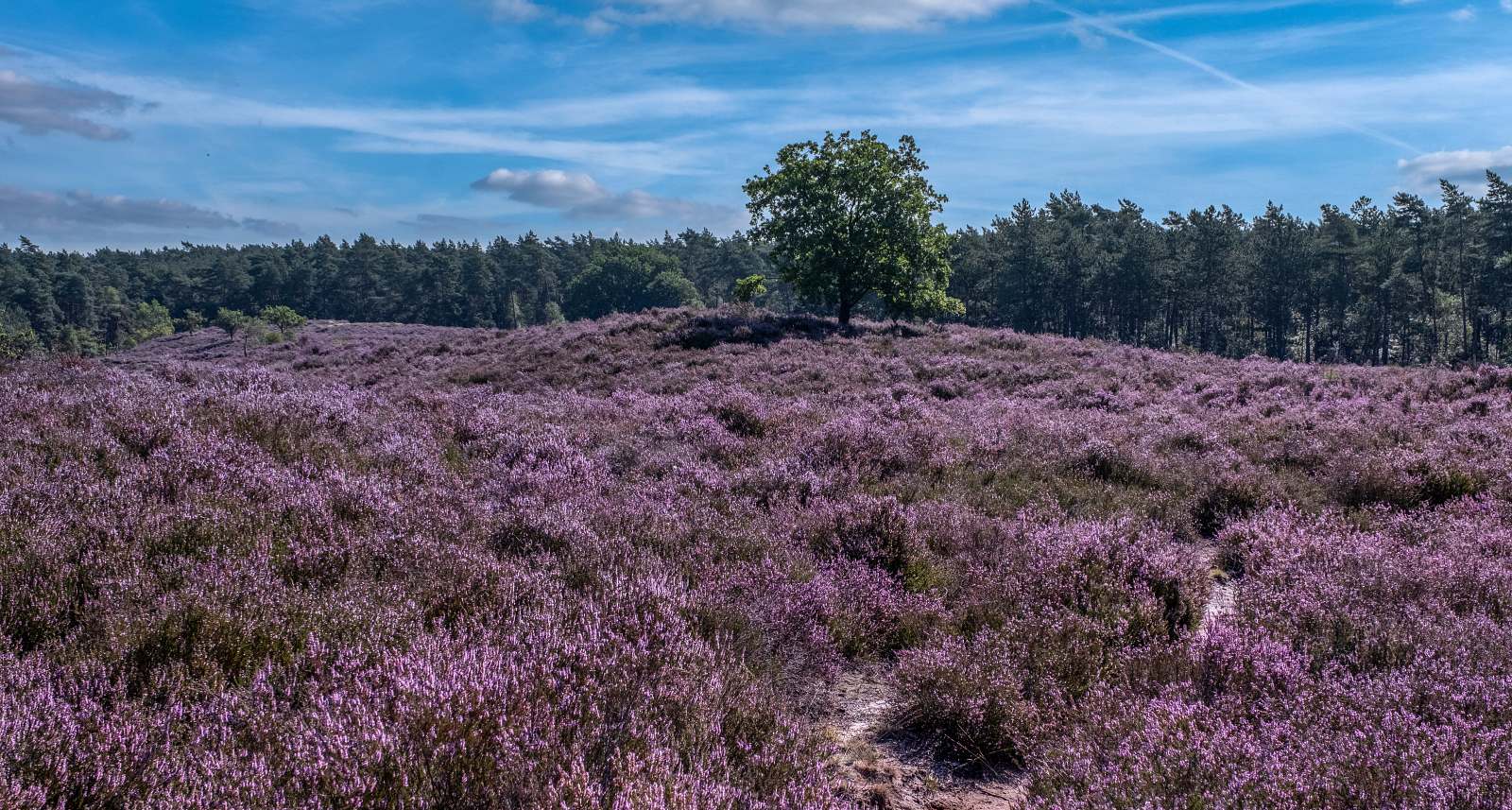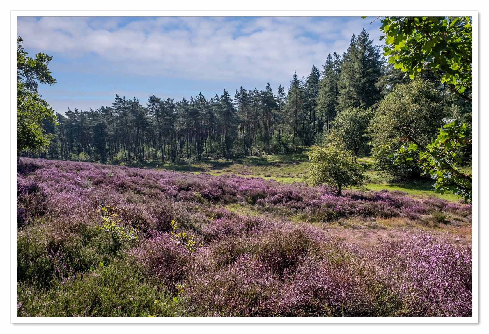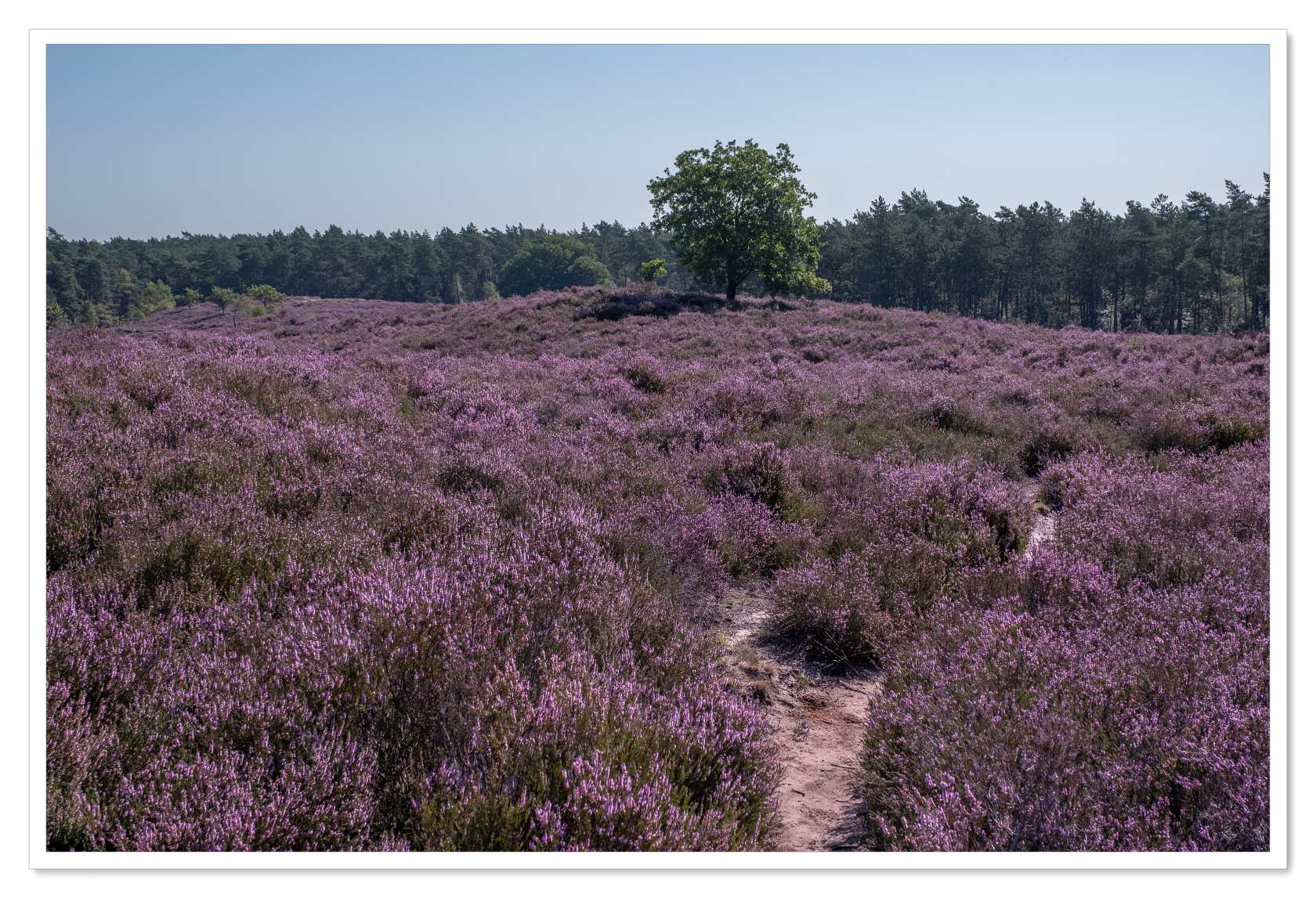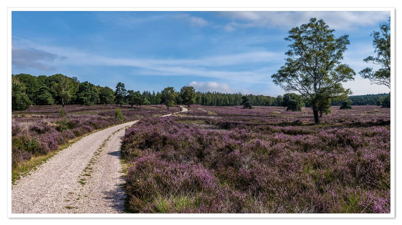 De eerste maal dat wij een van de twee wandelroutes liepen door de Loenermark, waren wij direct verrukt van de heidegebieden die je op de route passeert. Direct besloten wij om hier nog een keer naartoe te gaan als de heide verder in bloei zou staan. De 11e augustus ’23 was dat moment. Opnieuw kozen wij voor de 14 kilometer lange gele zwerfkeien route. Opnieuw genoten wij van de drie verschillende heidegebieden waarover en waardoor de route loopt. De heide stond inderdaad meer in bloei, maar volgens mij nog niet op het hoogtepunt. Reden dus om nogmaals de gele route gaan lopen.