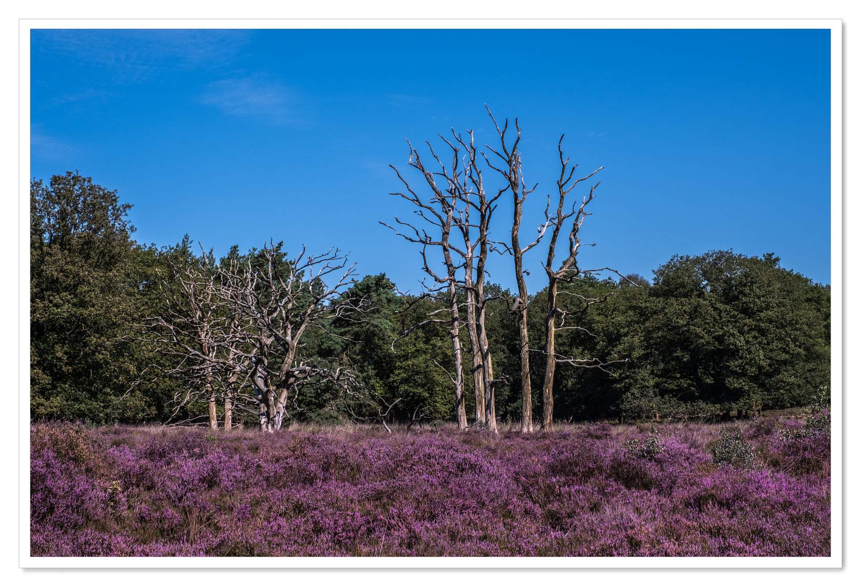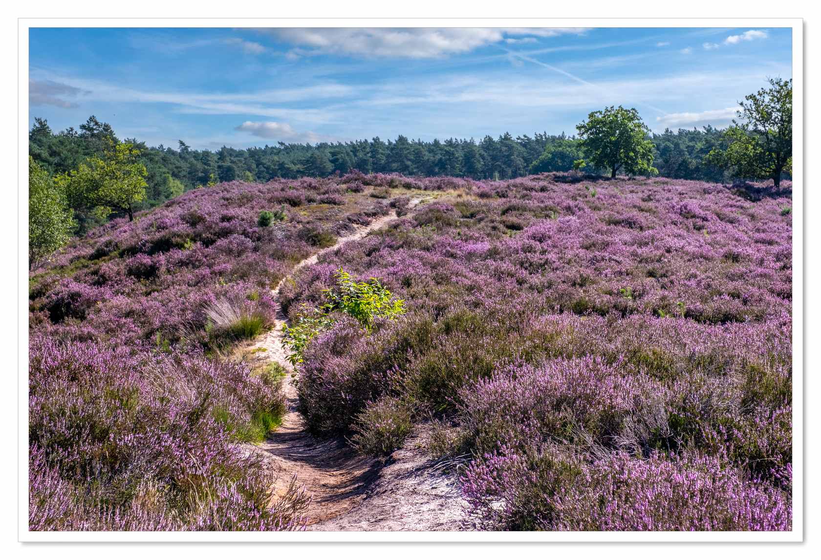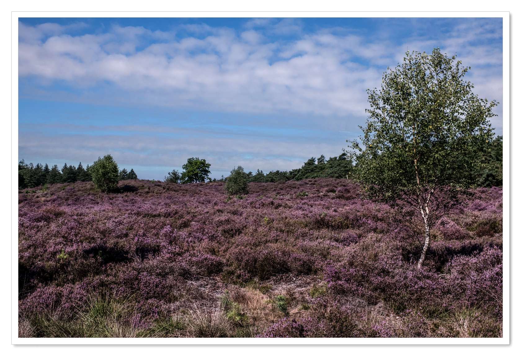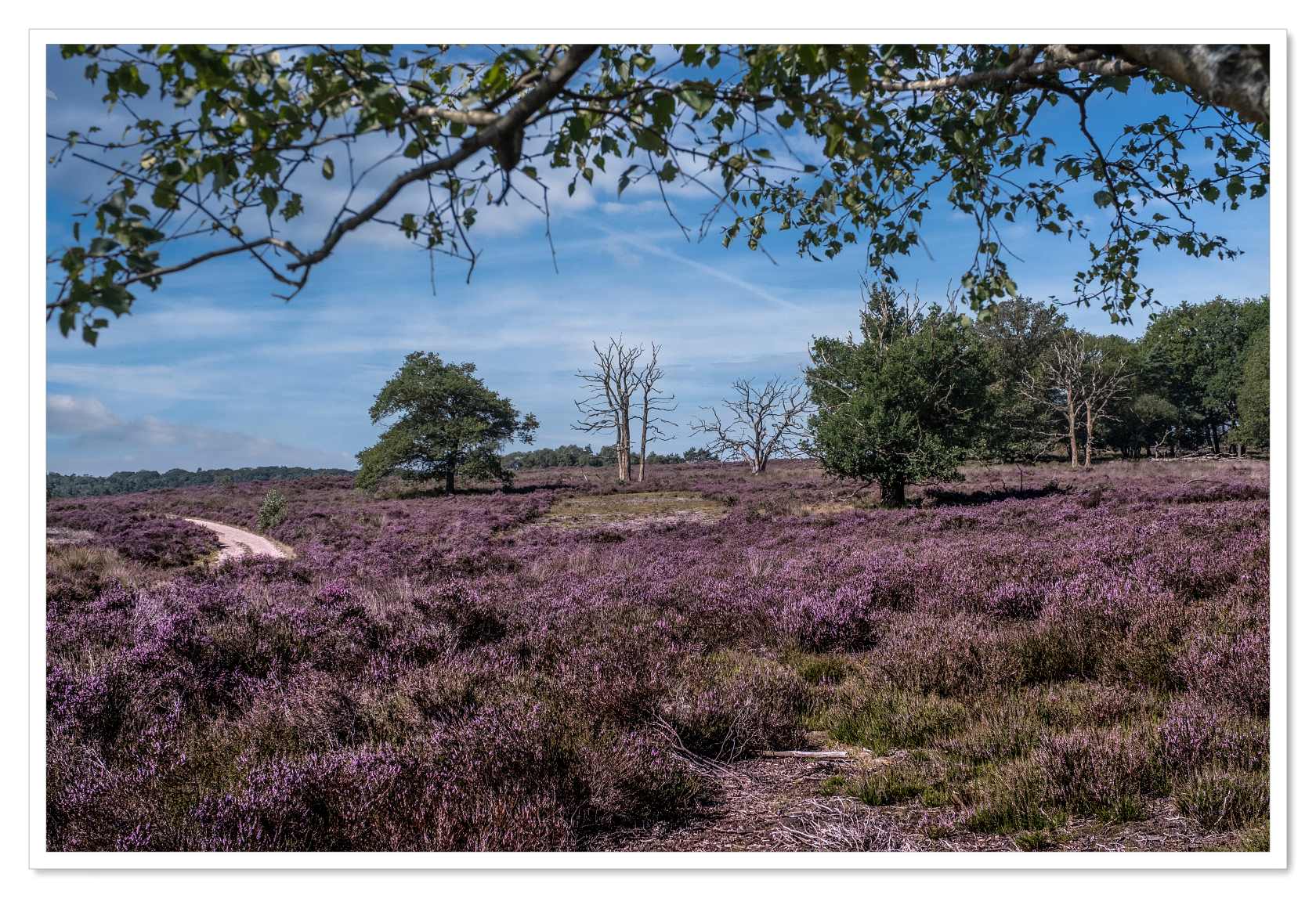 De eerste maal dat wij een van de twee wandelroutes liepen door de Loenermark, waren wij direct verrukt van de heidegebieden die je op de route passeert. Direct besloten wij om hier nog een keer naartoe te gaan als de heide verder in bloei zou staan. De 11e augustus ’23 was dat moment. Opnieuw kozen wij voor de 14 kilometer lange gele zwerfkeien route. Opnieuw genoten wij van de drie verschillende heidegebieden waarover en waardoor de route loopt. De heide stond inderdaad meer in bloei, maar volgens mij nog niet op het hoogtepunt. Reden dus om nogmaals de gele route gaan lopen.