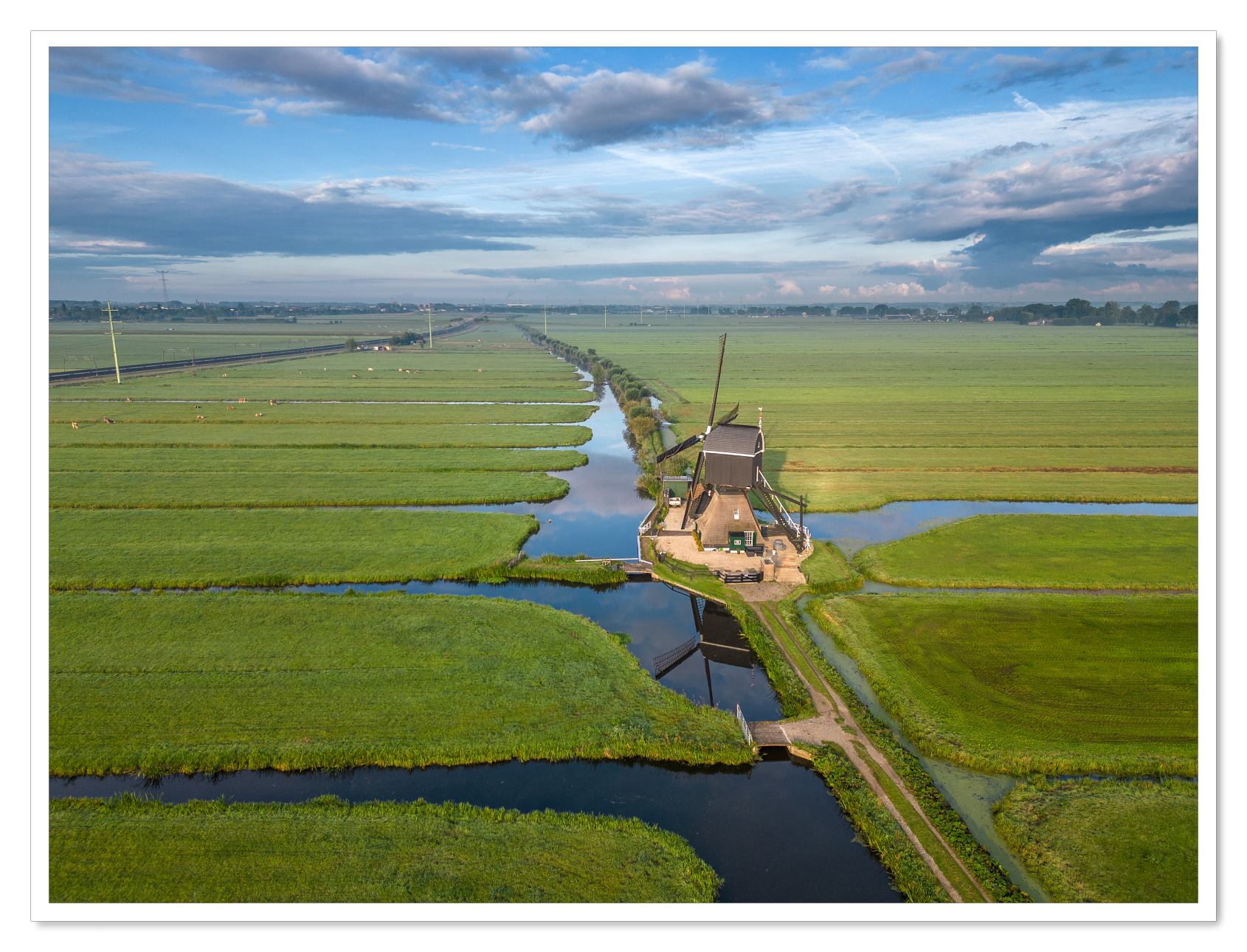 Niet veel later besluit ik naar de andere kant van de molen te lopen. Hiervoor passeer je de molen op enkele meters via een smalle doorgang. Even verderop op de Tiendweg heb ik ook een mooi zicht op de molen en bovendien lost de mist langzaam op. Het levert wat mij betreft ook erg fraaie foto’s op, zowel vanaf de grond als vanuit de lucht.