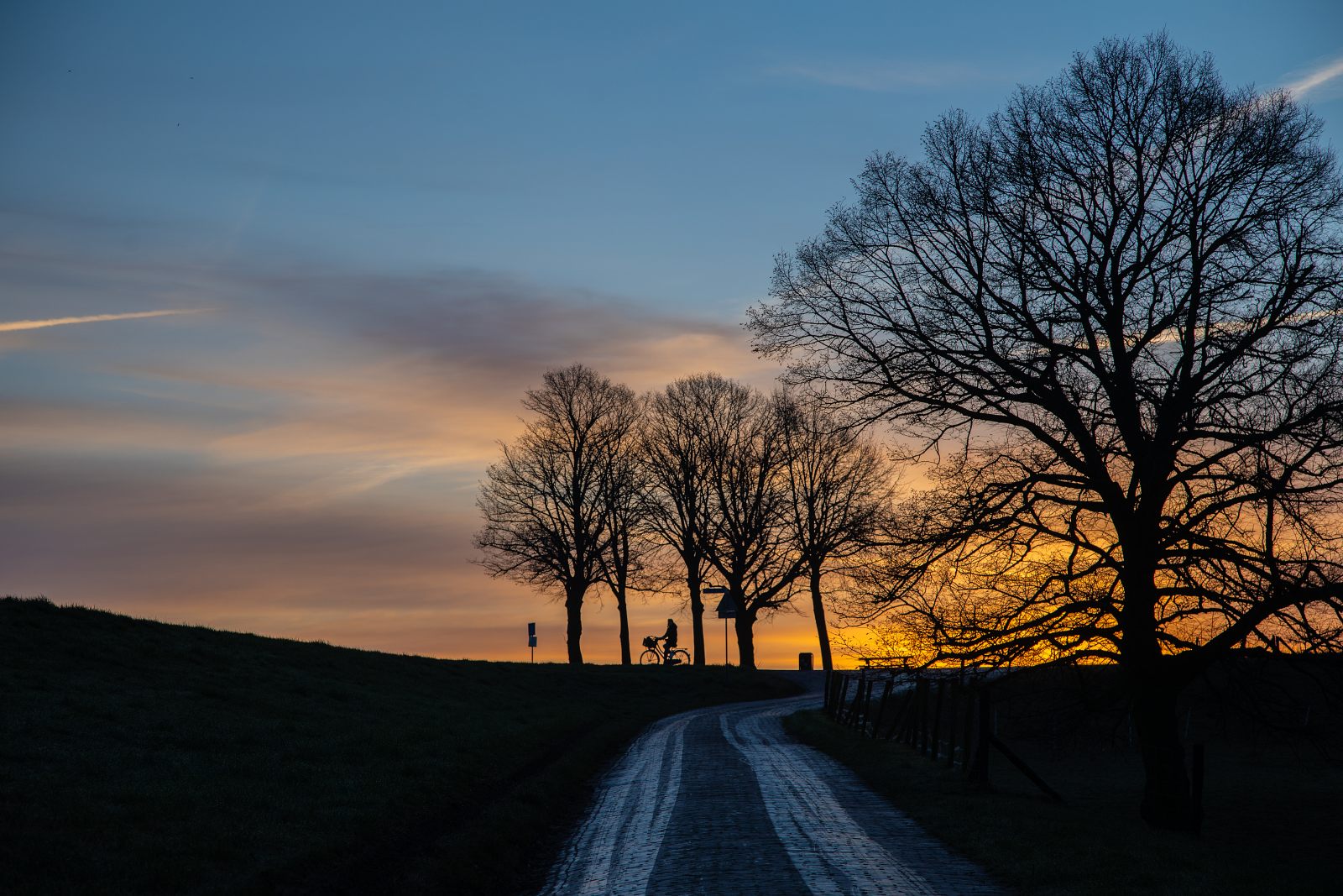 Wat heb je weer mooie kleuren in de foto’s, foto nr. 2 vind ik geweldig met silhouet van de fietser, mooi van kleur en zeer zeker pracht standpunt.