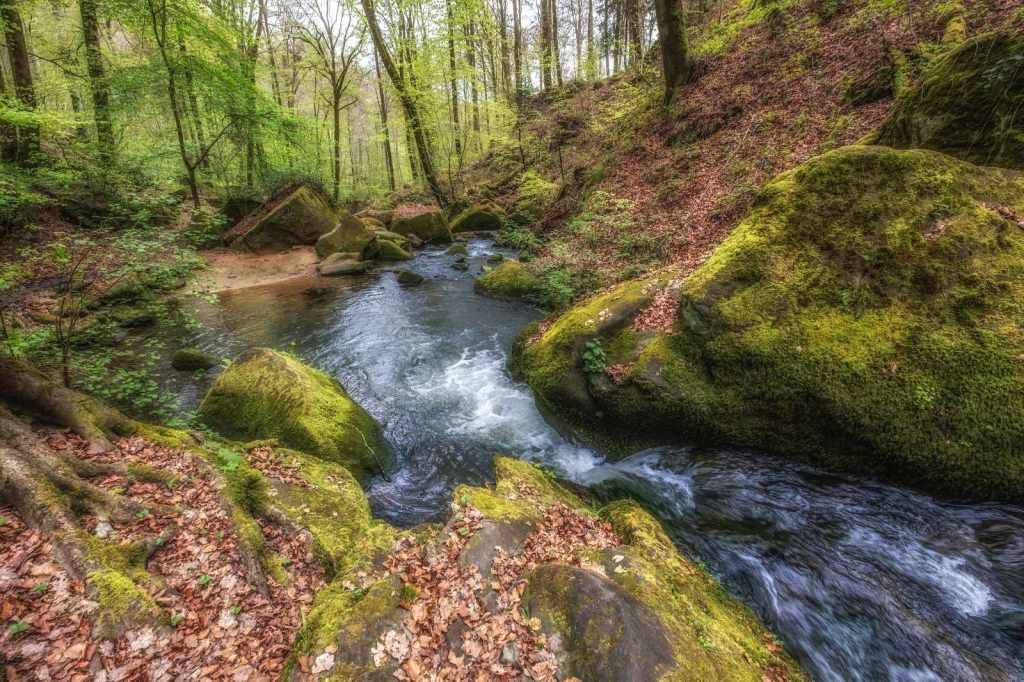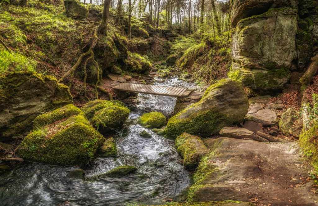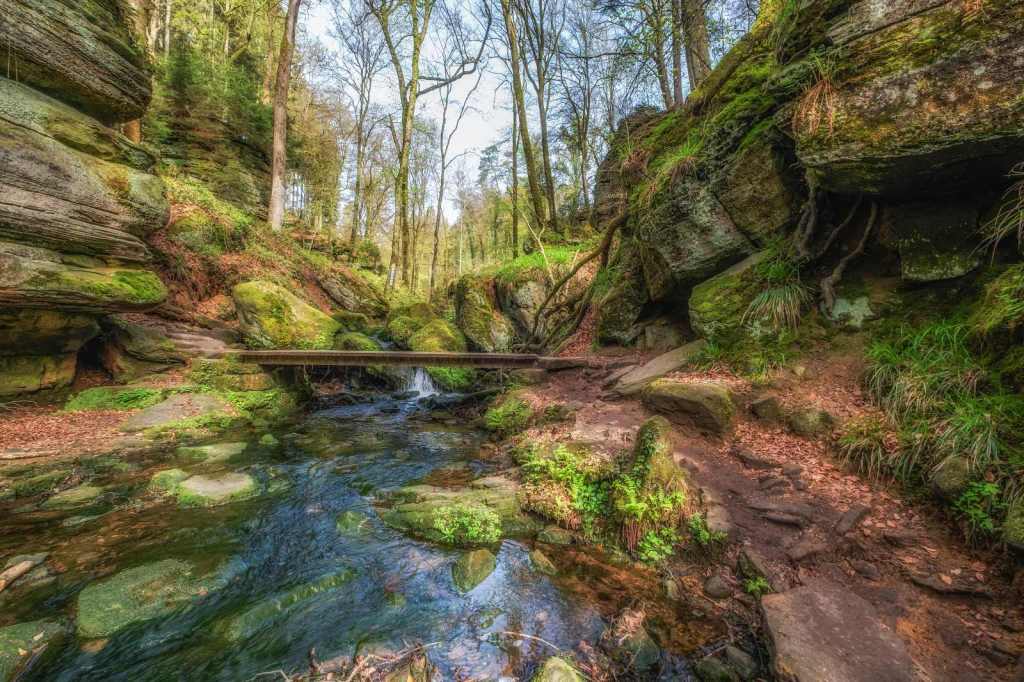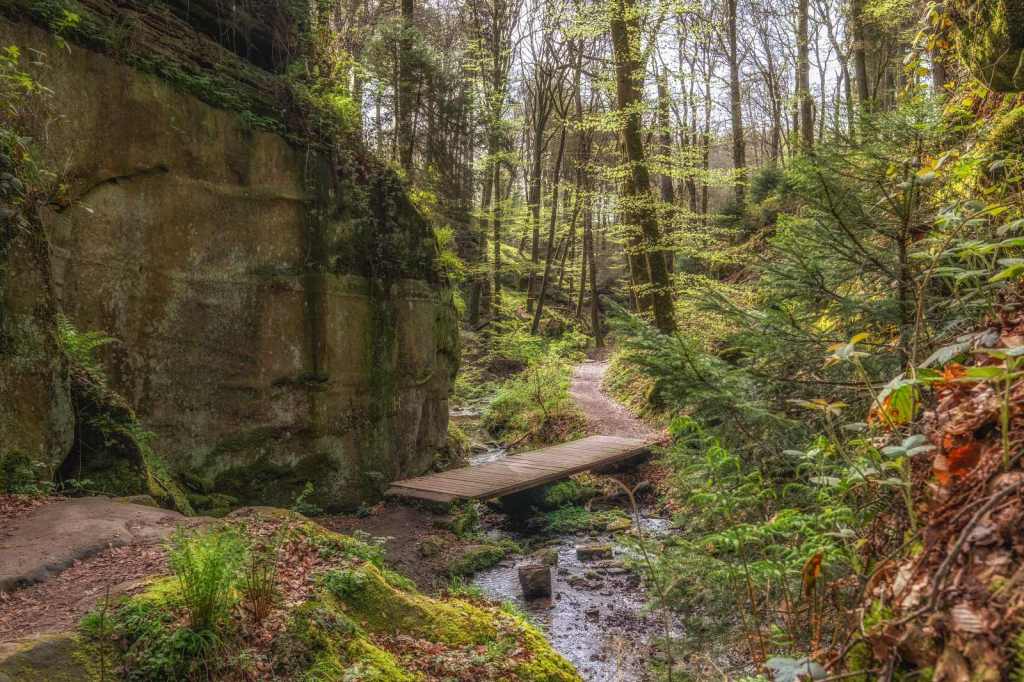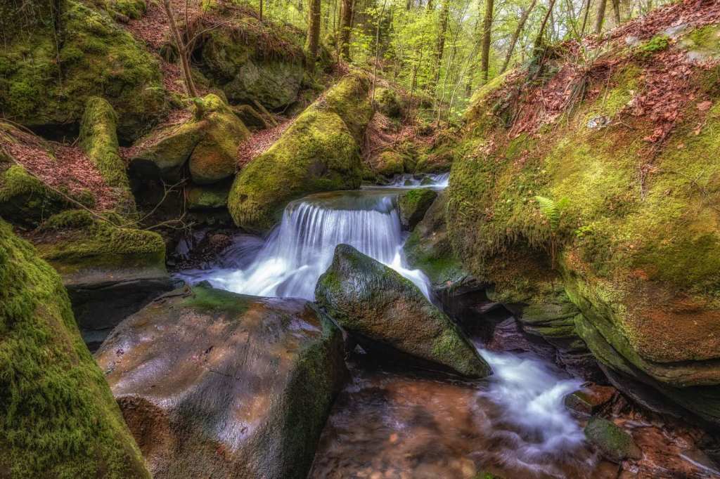 Op de derde ochtend in Luxemburg kozen wij om een wandelroute te starten vanuit het hotel. Het is slechts enkele meters lopen naar het Chateau Beaufort waar tegenover het pad begint. Direct voert de route ons langs een stromend beekje dat zijn weg vindt door een sprookjesachtige groen dal. Het is werkelijk genieten van het begin tot het einde van deze geweldig mooie route. Een route waarbij het pad langs de beekjes dan weer goed te lopen is en dan weer enige klimmen en klauteren van ons vraagt. Zelfs mogen wij de beek oversteken via stapstenen, hetgeen het adrenaline peil licht doet stijgen. Na ruim 11 kilometer genieten eindigen wij weer bij het hotel.