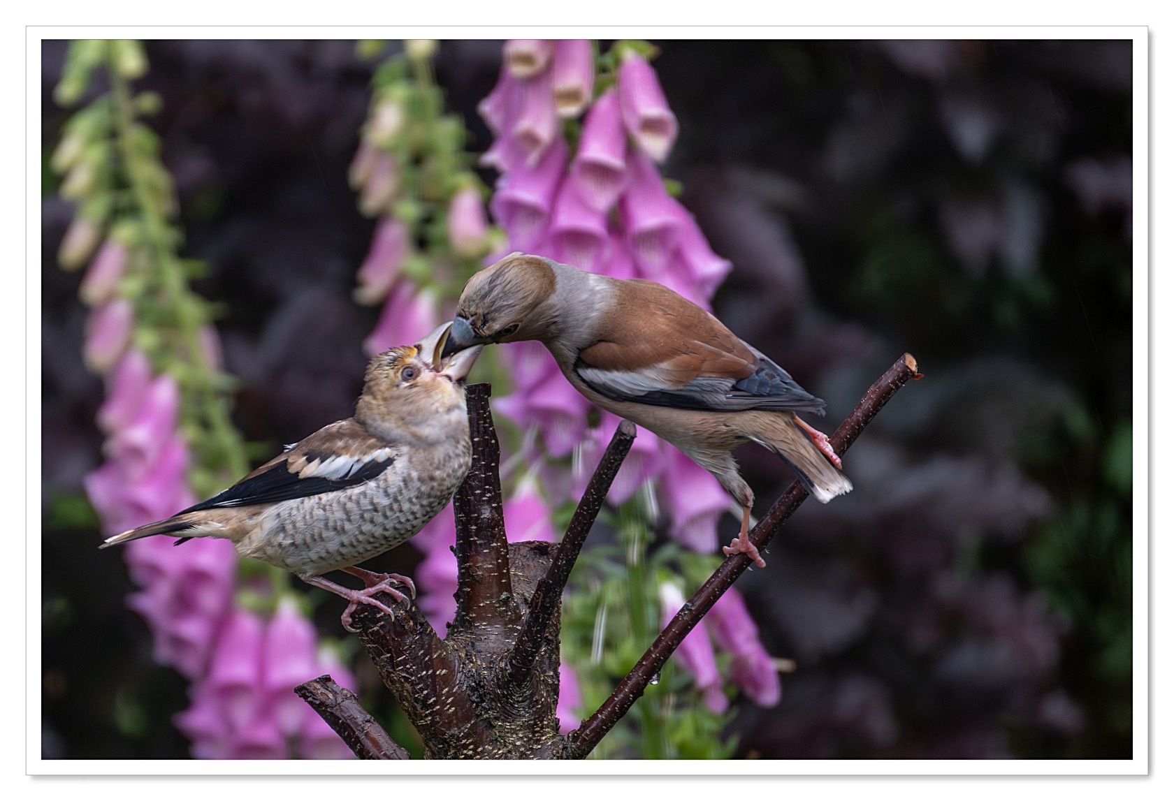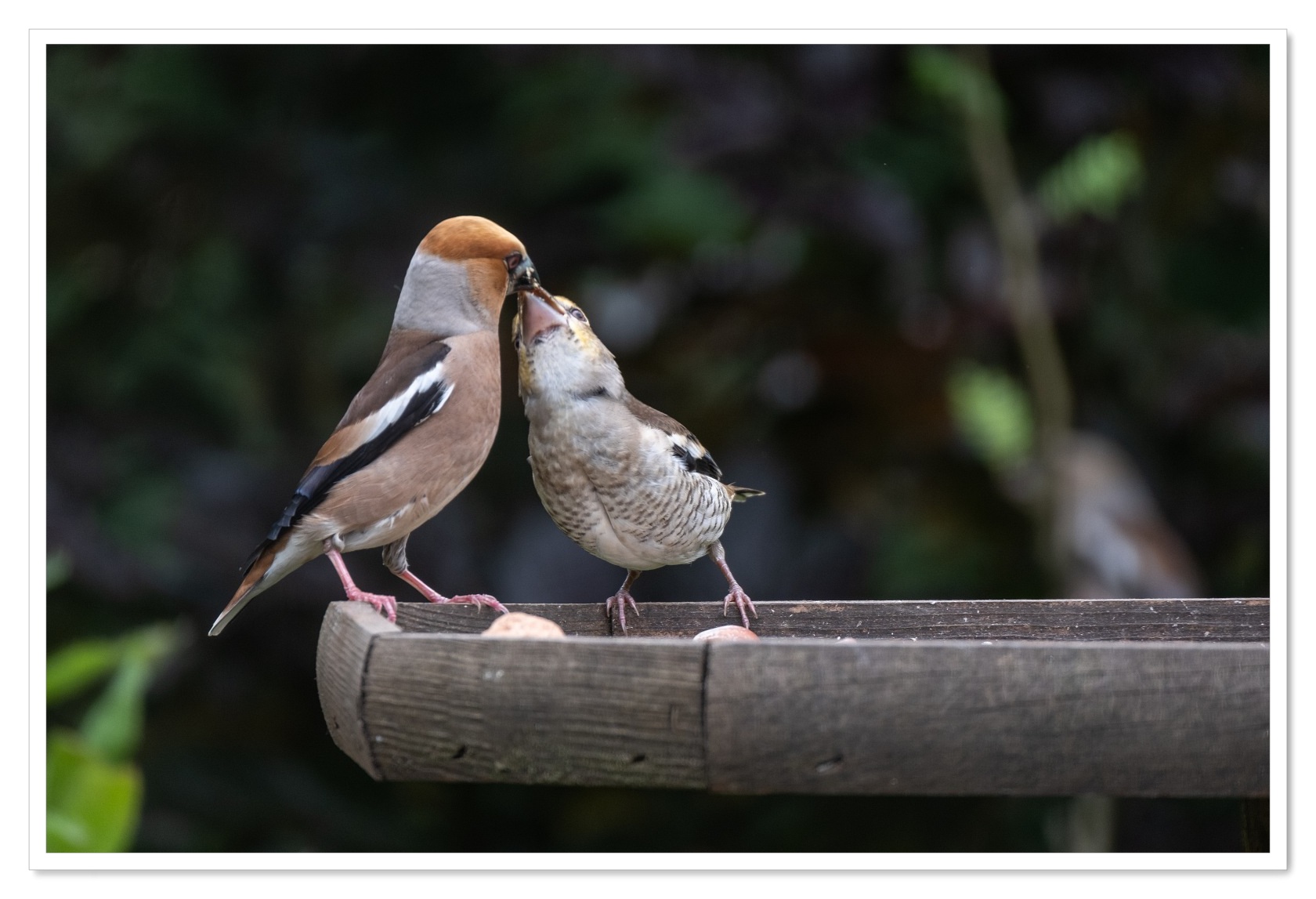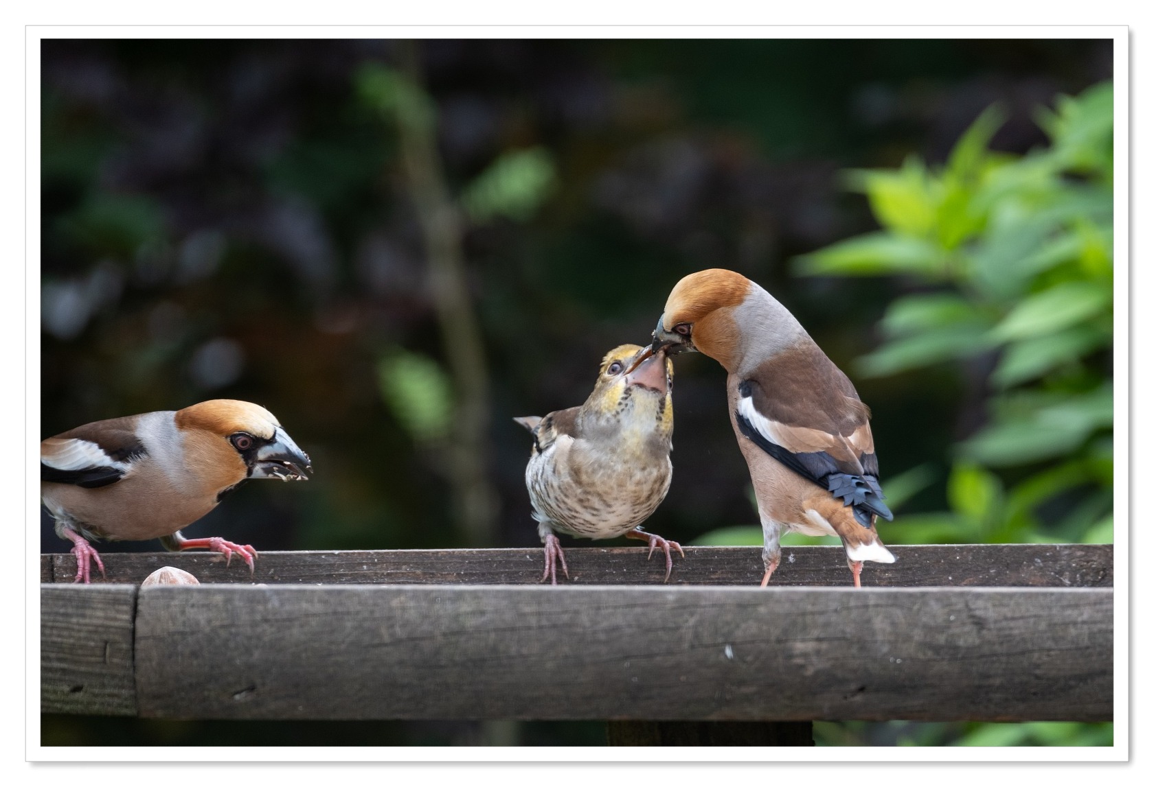 Het is een tijdje rustig geweest wat betreft de vogels in onze tuin in Emst. Het broedseizoen wellicht? Hoe dan ook, op dit moment is het weer een komen en gaan van verschillende soorten vogels. Zo detecteert de Merlin Bird ID app op mijn smartphone soms tot 13 soorten vogels in onze directe omgeving. Gelukkig laat de appelvink zich ook weer veelvuldig zien. Zelfs worden nu de jongen gevoerd op de voederplank en dat is natuurlijk reden om de camera op dit schouwspel te richten…