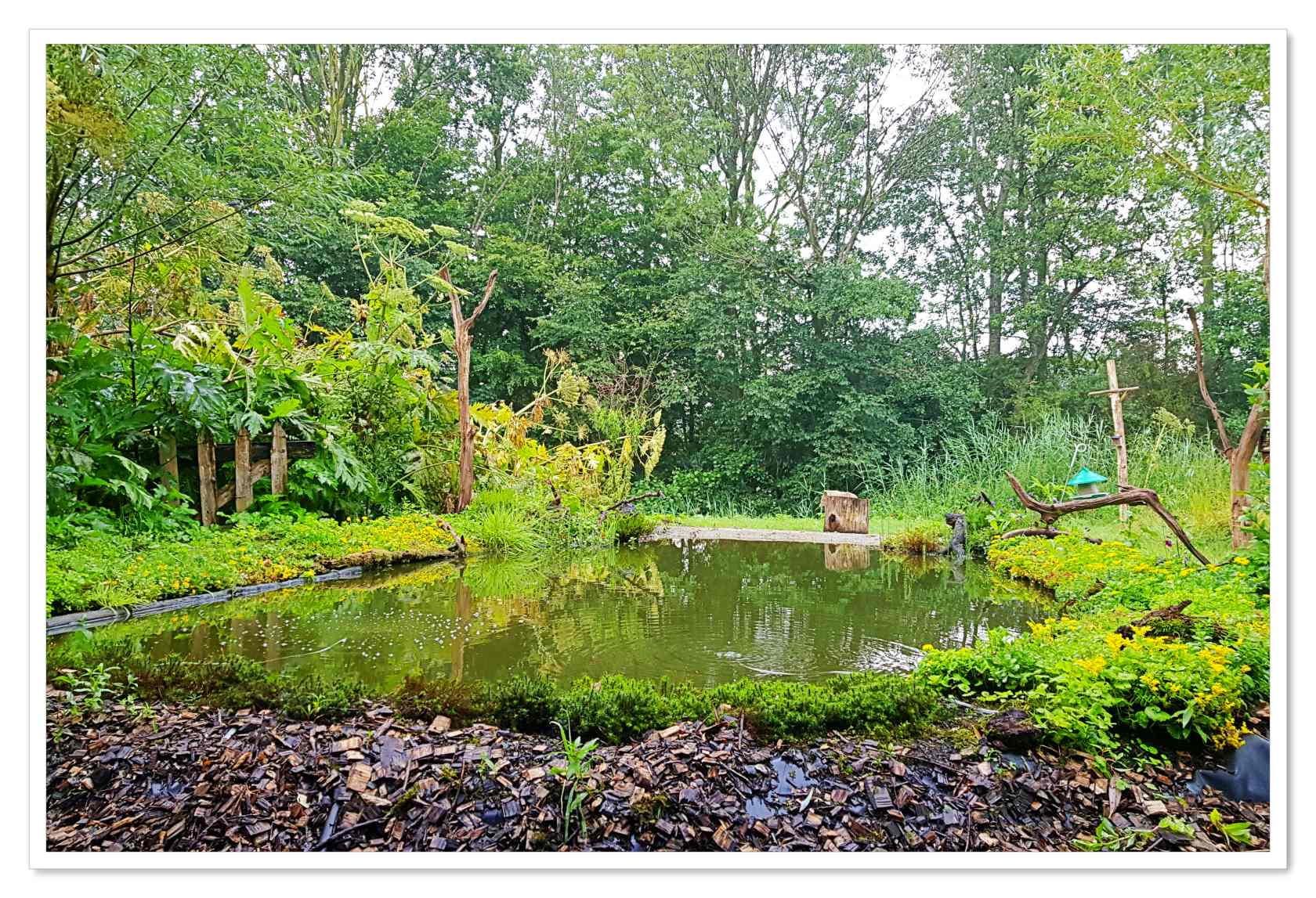 Af en toe bezoek ik een fotohut om vandaar uit vogels te spotten en te fotograferen. Een mooie manier, vind ik, om vogelsoorten te zien in hun eigen habitat. De fotohut die ik op 10 juli bezocht ligt net buiten Odijk (Utrecht) en heet De Vroege Vogels Hut. Een mooie drie persoons hut gelegen in een erg rustig landelijk gebied. Vanuit de hut, die van alle gemakken is voorzien, kijk je uit over een vijver omringd door een prachtige setting. De vogels die voor ons verschenen waren weliswaar geen bijzondere, maar de kleurrijke en gevarieerde setting zorgde wel voor een prachtig decor.