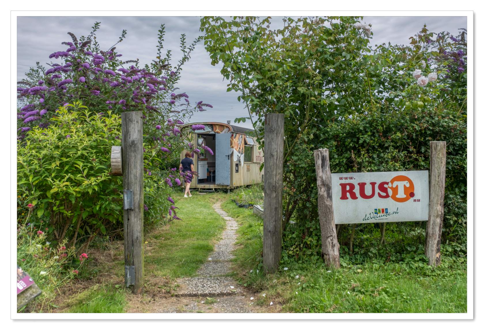 De zigeunerwagen of Pipowagen is niet allen mooi beschilderd, maar ook gezellig ingericht. Een echt rustpunt dus!