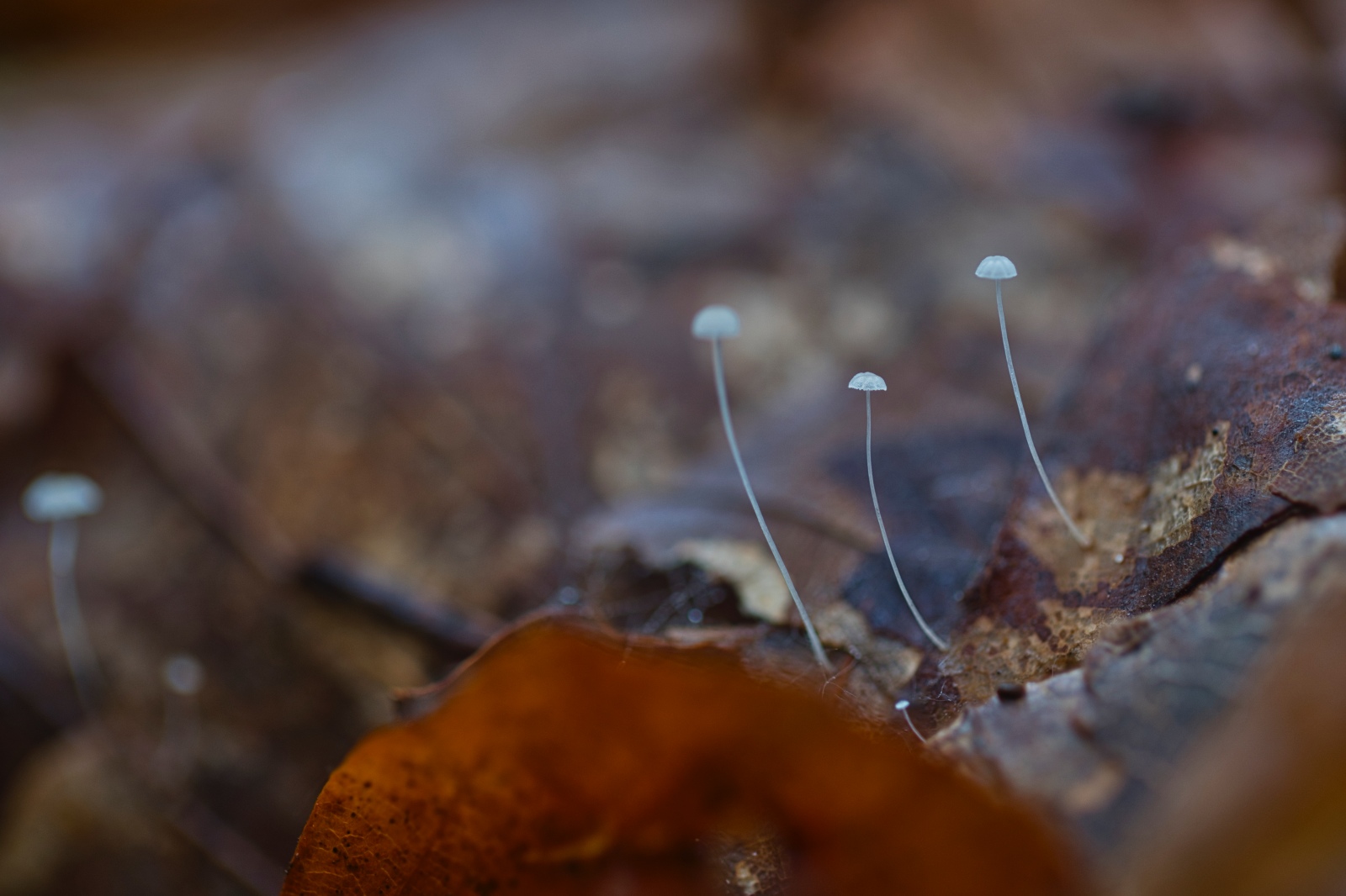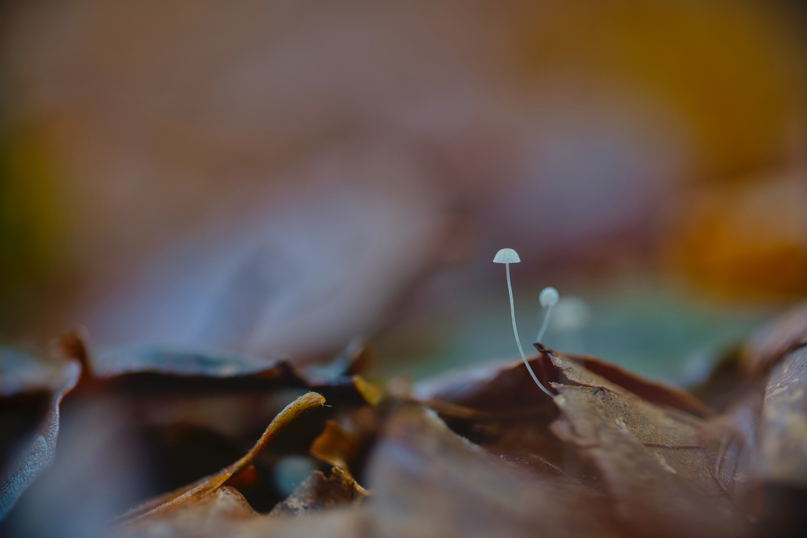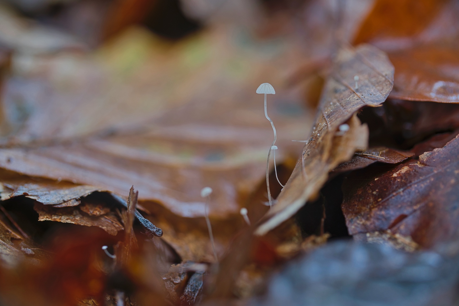 Voor het fotograferen van paddenstoelen heb ik in principe niet meer dan enkele vierkante meters bosgrond nodig, Onlangs was ik samen met mijn fotomaat in het Vierhoutensebos. Daar vond zij , met haar scherpe blik, de kleine beukenbladmycena of Mycena Capillaris. Een paddenstoel waarvoor je werkelijk met je neus op de grond moet liggen. Na die ene vondst volgden er meer, en dit maal niet op enkele vierkante meters, maar op enkele vierkante centimeters…