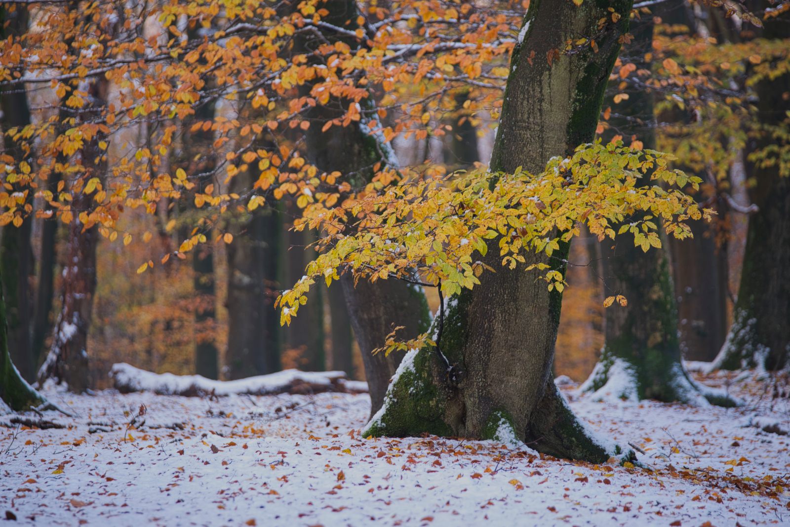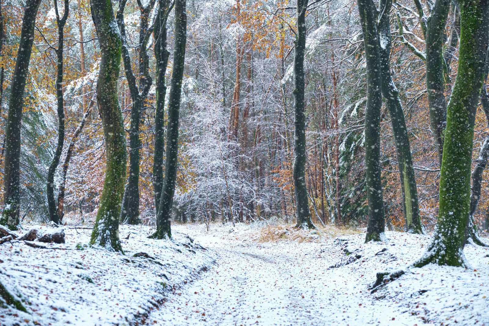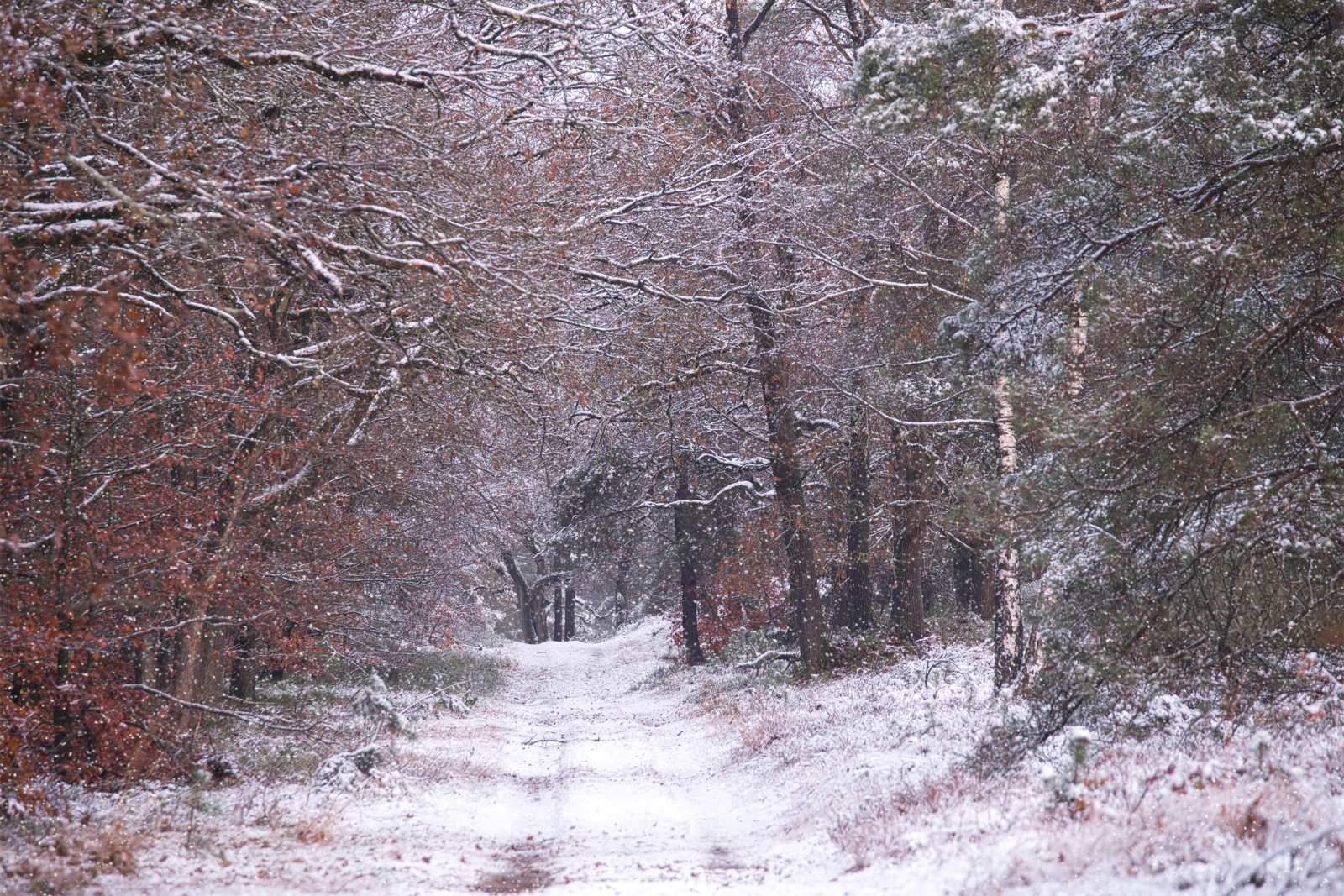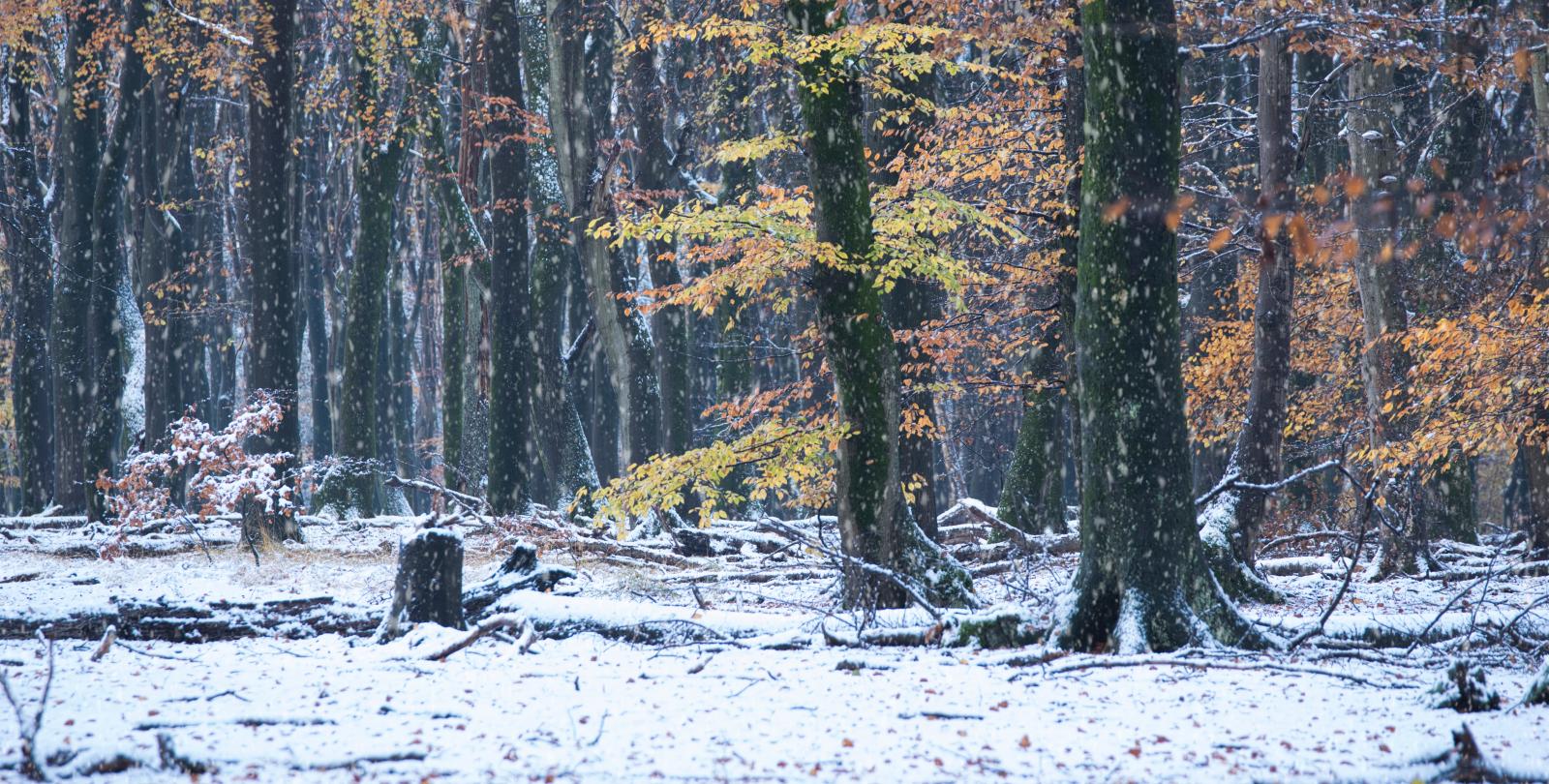 In de nacht van 20 op 21 november jl. had het op het Noordelijke deel van de Veluwe voor het eerst gevroren en zowaar een heel klein beetje gesneeuwd. Veel stelde het niet voor en alles was ook, toen de zon opkwam, verdwenen. Anders was dit tijdens de volgende nacht. Het sneeuwde namelijk serieus en het bleef zelfs liggen. Reden om op de ochtend van 22 november er vroeg op uit te trekken naar het Vierhoutense Bos. Gelukkig sneeuwde het niet alleen onderweg, maar ook in het bos. Helaas viel in de loop van de ochtend geen sneeuw meer, maar vielen er bevroren druppels van de bomen. Hoe dan ook, ik heb die ochtend genoten van een weertype dat langzaamaan in Nederland dreigt te verdwijnen….