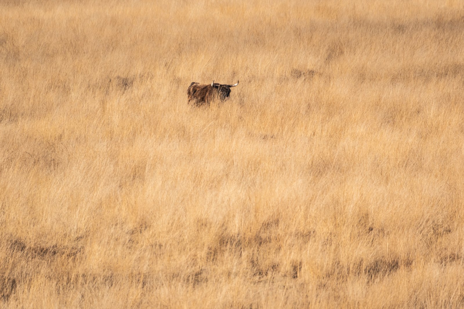 De naam Terletse Heide doet vermoeden dat het een groot heidegebied is en dat was het ooit zeker. Helaas hebben de paarse kleuren van de bloeiende heide plaats gemaakt voor het goudgele gras. Op zich een prachtig mooi gezicht, maar de reden dat er nu hoofdzakelijk gras groeit is verre van prachtig mooi. Een groot aantal Schotse Hooglanders is er ingezet om voor begrazing te zorgen. Of zij er evenwel in zullen slagen het gras terug te dringen betwijfel ik.